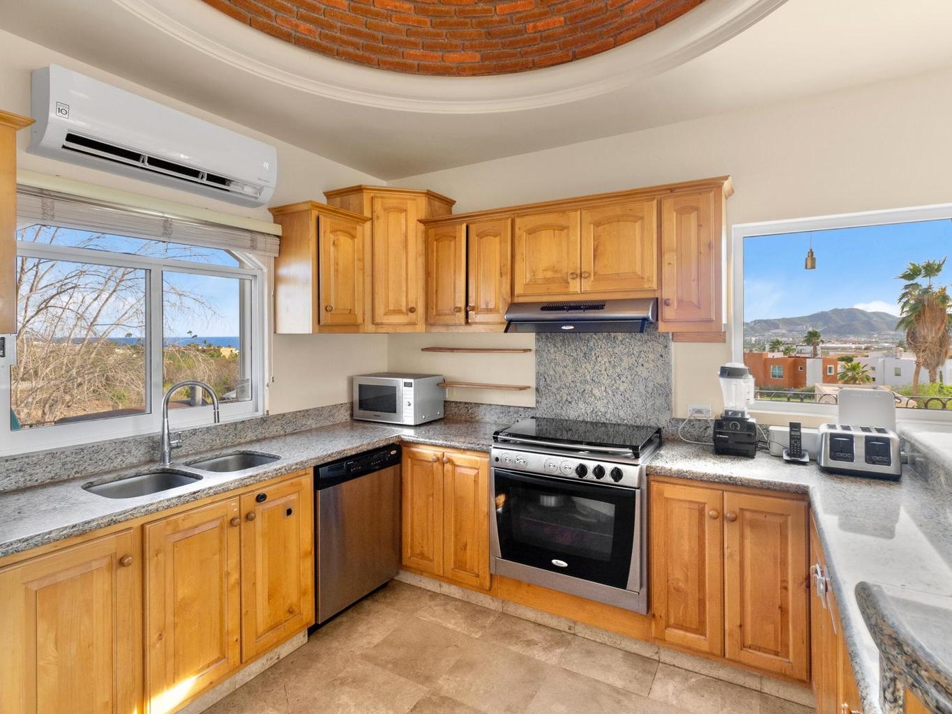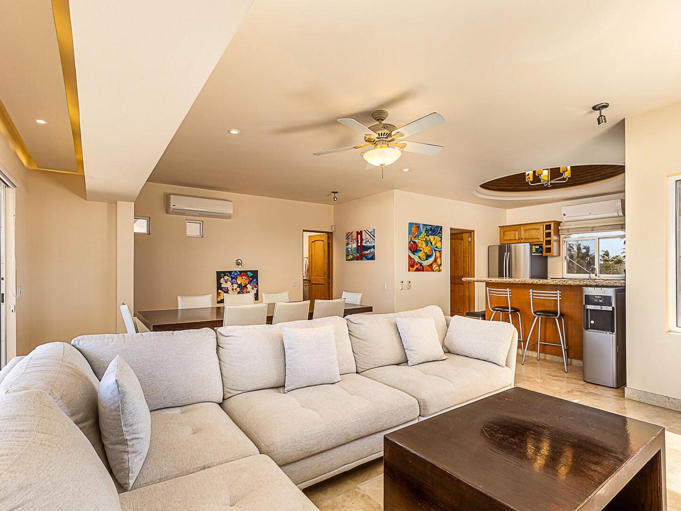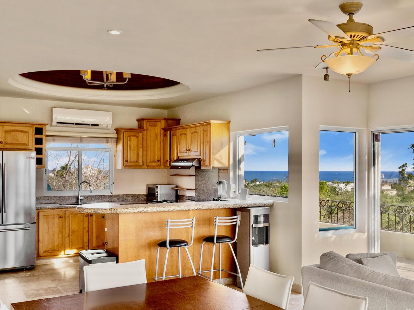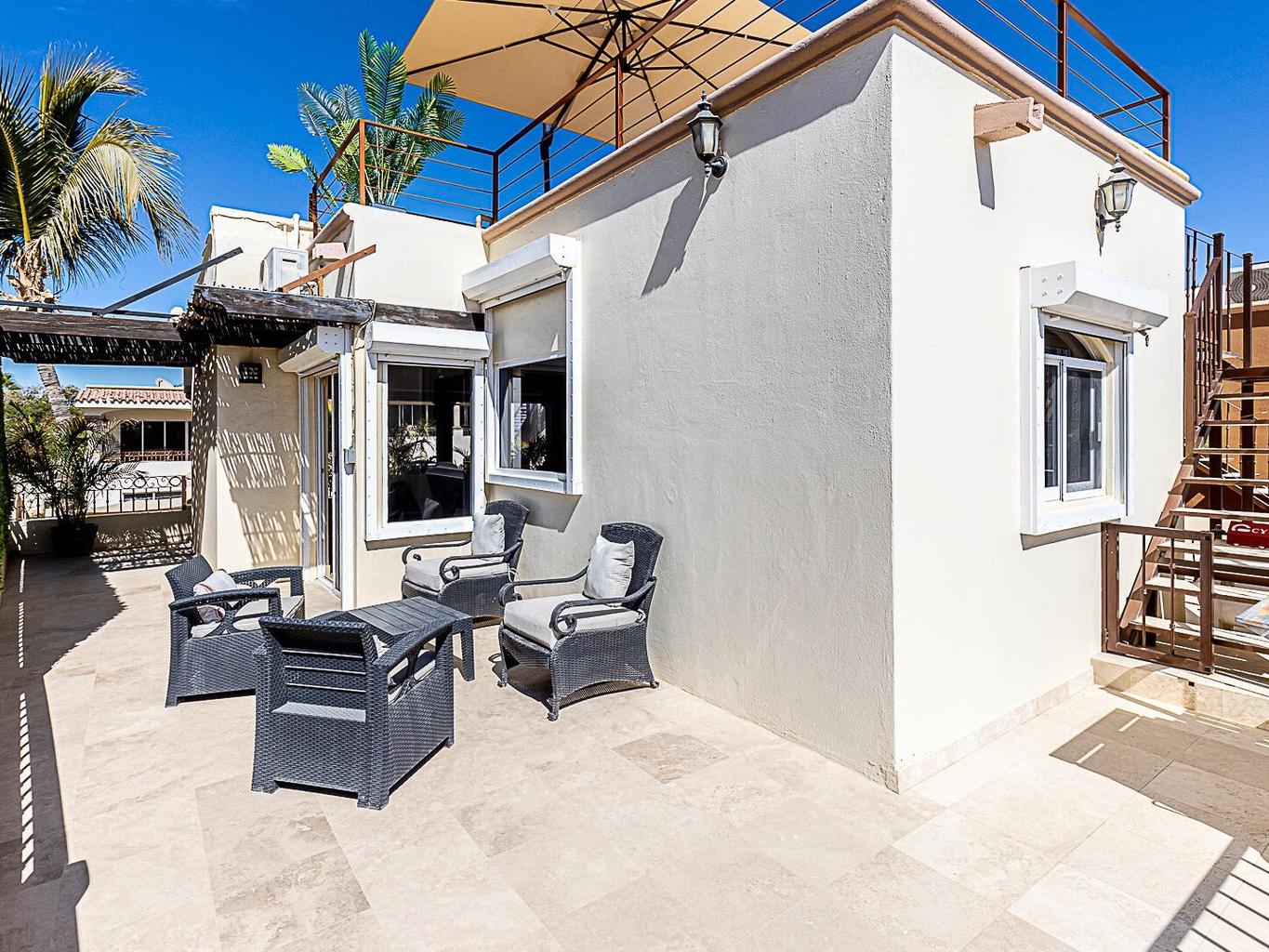 Beautiful 4-Bedroom Home in El Tezal, Cabo San Lucas - Now Offering Seller Financing! This turn-key home is in excellent condition, offering spacious living areas with stunning ocean views and a large terrace perfect for relaxing. The rooftop features a 5-person jacuzzi, ideal for enjoying sunsets over Cabo San Lucas Bay. One bedroom can easily be converted into an office or studio. The Master bathroom includes a hydro-massage tub for ultimate relaxation. The home comes fully furnished with new mattresses, hurricane shutters for safety, and a backup generator to power the entire house during outages. A 15,000-liter cistern ensures reliable water supply. Energy-efficient inverter air conditioning units provide quiet operation. There's parking for 2 cars and ample storage space.