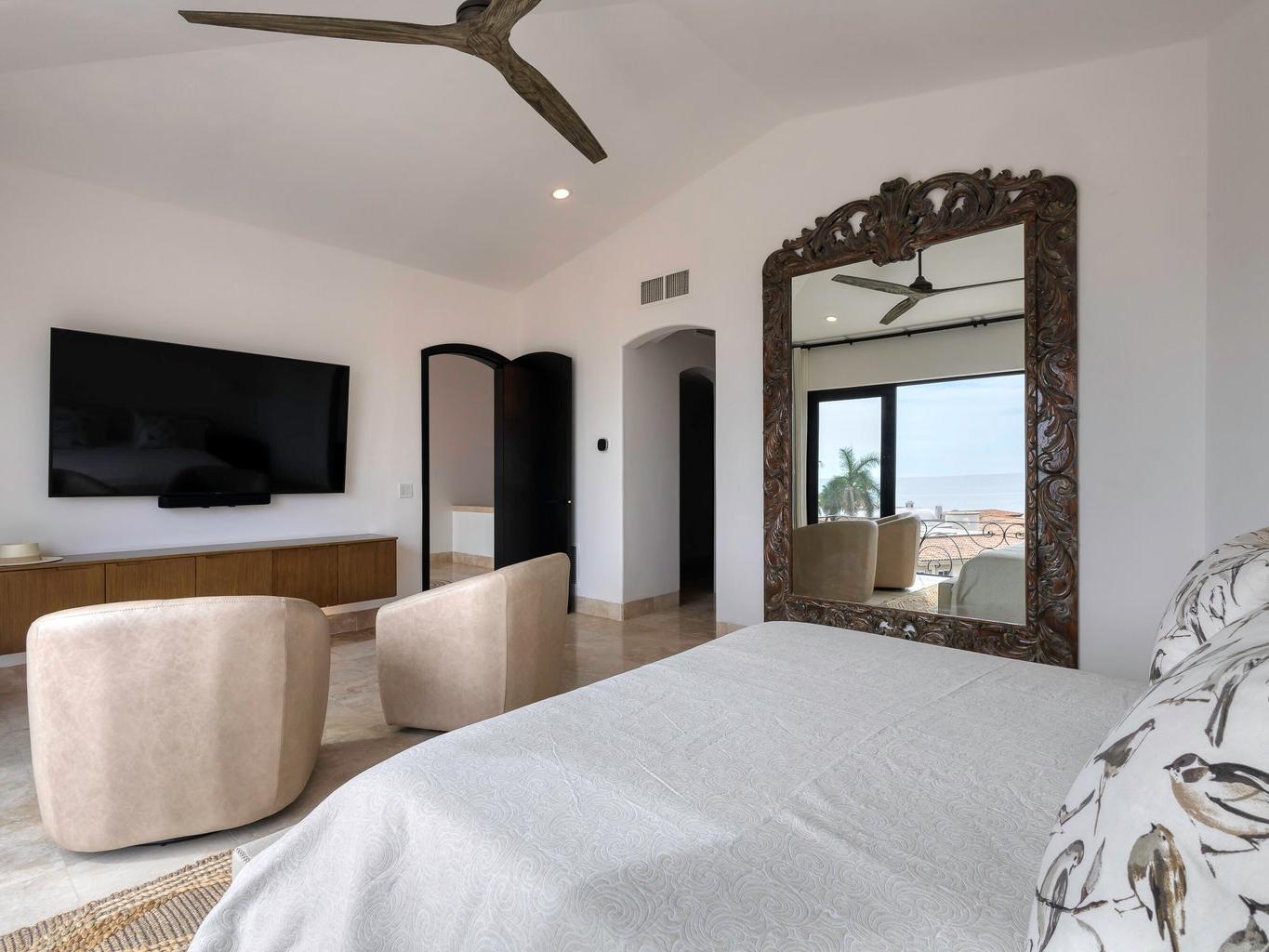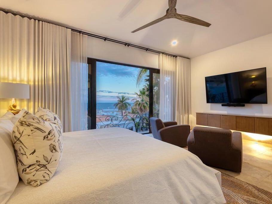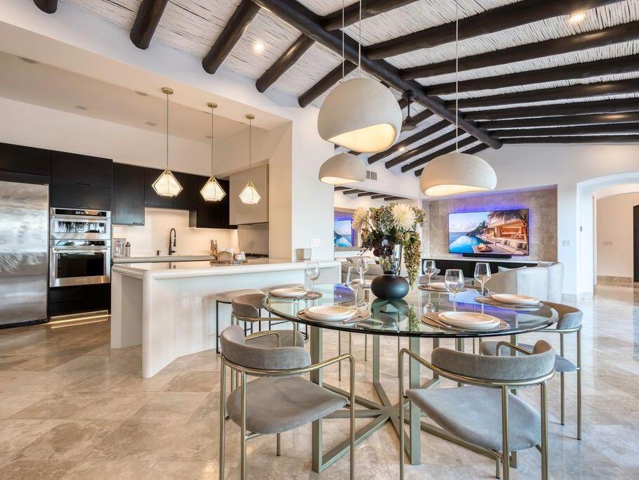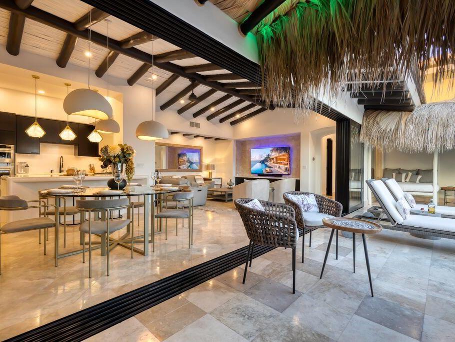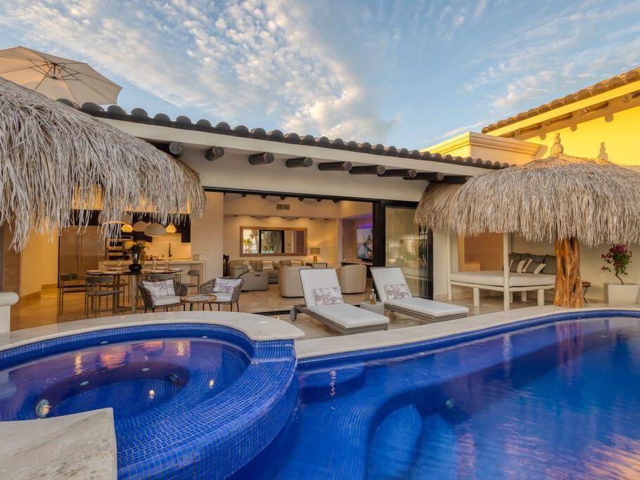 The advantage of owning an income creating home that can make over 400l a year is just one part of the benefit of this One-of-a Kind Opportunity to own one of the most unique Celebrity Homes in Los Cabos. Hidden in a waterfront enclave above the crystal bay waters, this aptly named Estate awaits purposefully facing the Sea of Cortez and within very close proximity to a long list of spoils. The spacious residence spans more than 5918 square feet under ac-over 8000 total, designed for both enjoyment, privacy and deserved oceanside living. A dramatic triple-height foyer, customizations and natural light, lead to spanning living and dining area layered in marble, art and stone throughout - including the St Tropez themed , added zen spaces, rooftop and sky lounge.