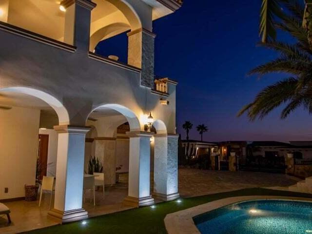Located in the exclusive community of Rancho Paraiso. This custom 3 bedroom + office and 2.5 bath home are an excellent retreat for the whole family. This home is an entertainer's paradise with large spacious patios on the top and bottom levels. The home is nestled on one of the largest lots in Rancho Paraiso and offers spectacular views of the Arch and Sea of Cortez. Located only 5 minutes from downtown Cabo. This home is constructed with energy efficient 3d foam panels for energy efficiency. 3 spacious bedrooms are located on the main floor allowing easy access to the pool and jacuzzi with a spacious planted back yard. This property has plenty of space to build a large casita.