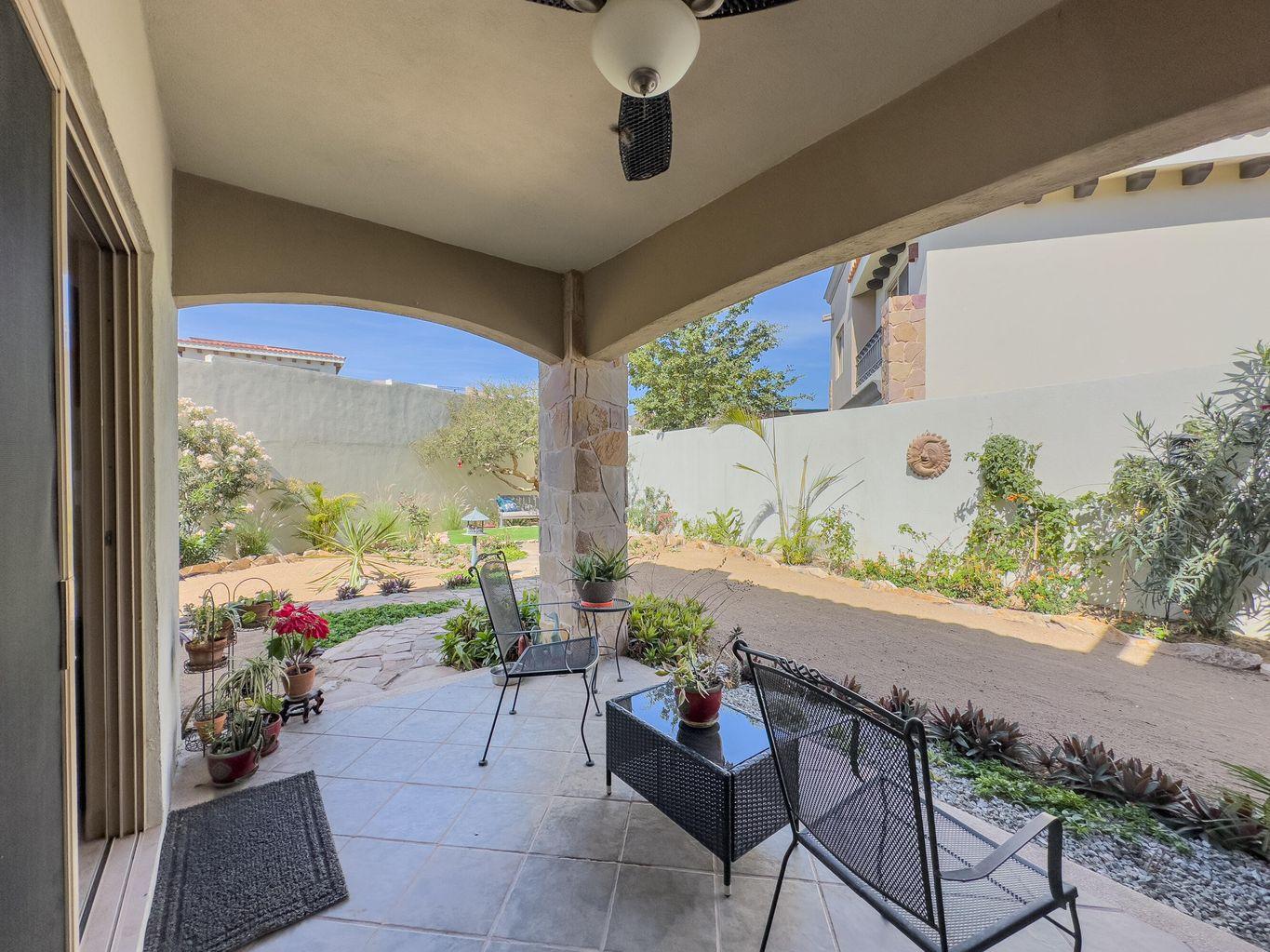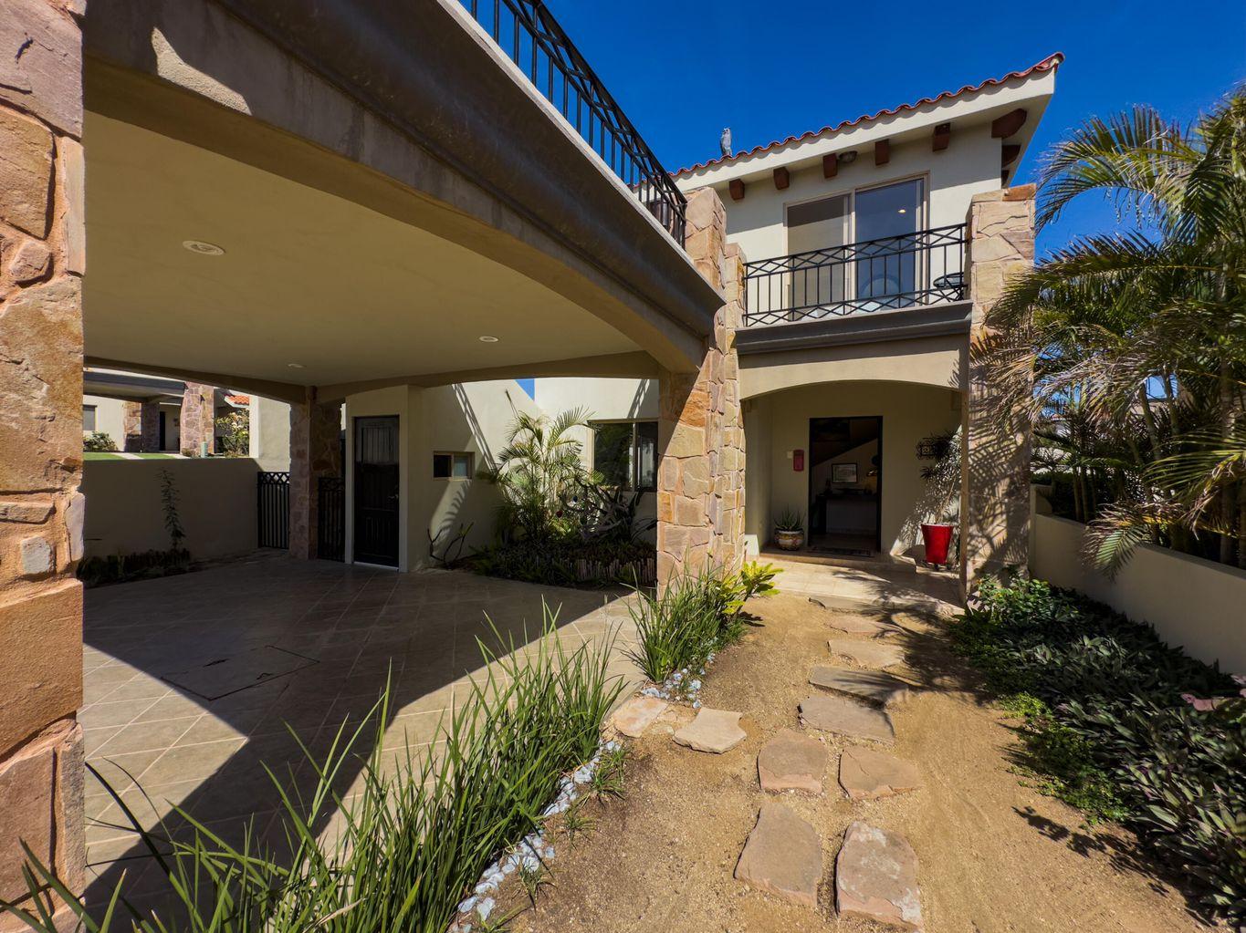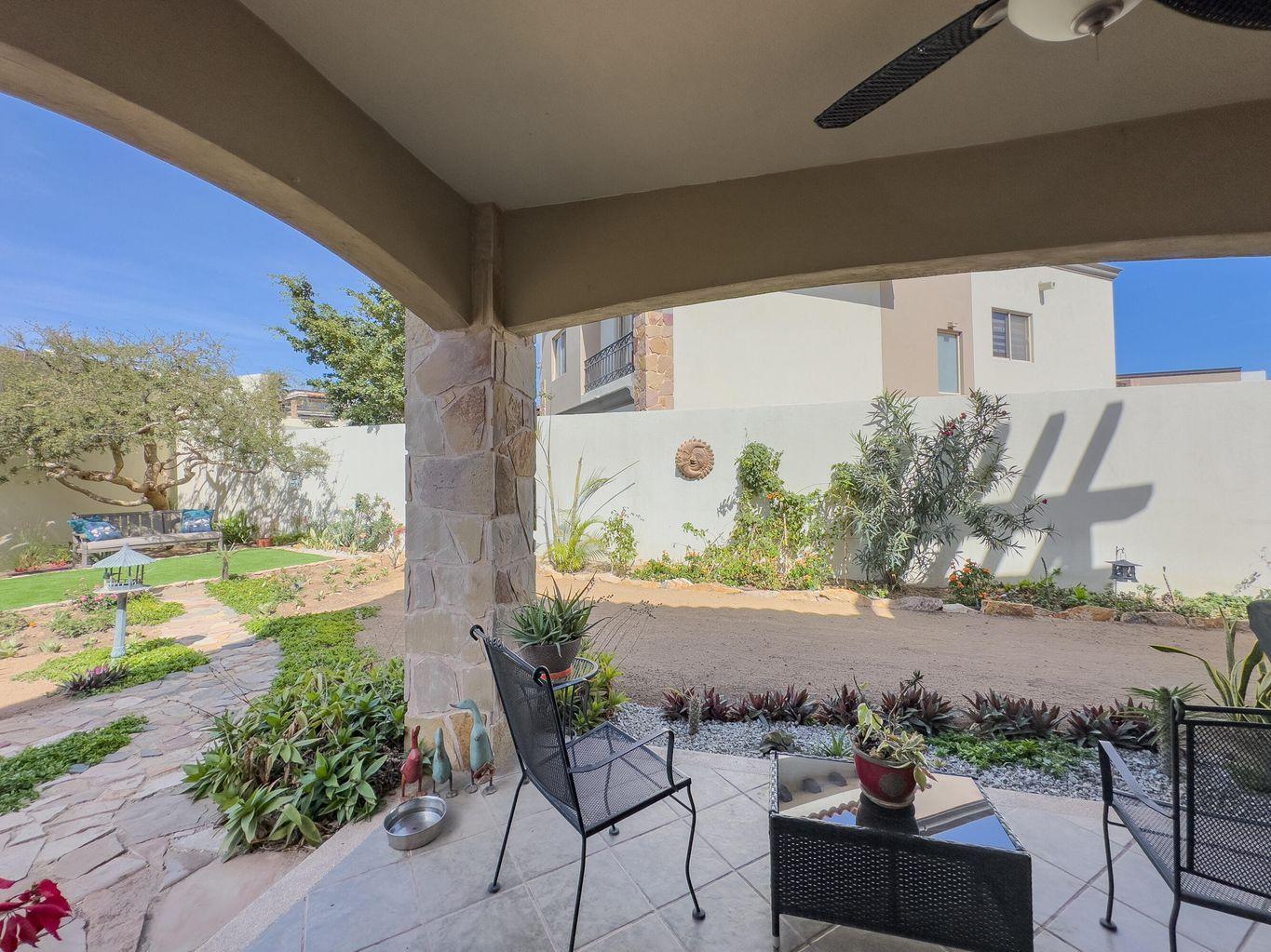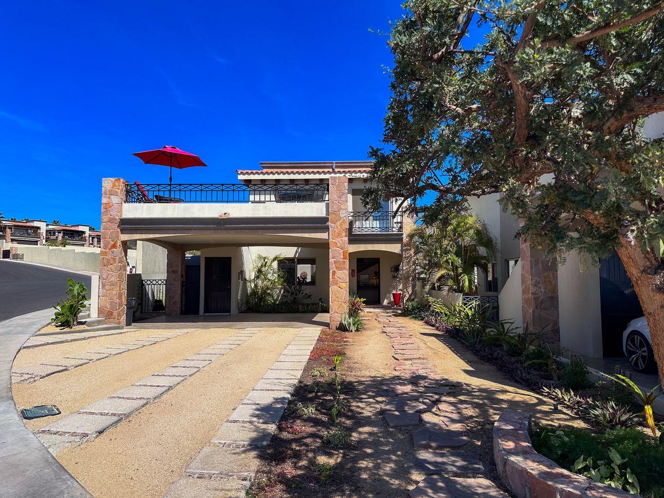Casa Nano. A 3BD/2.5BA home set on one of the largest lots in the community, ideally located across from the clubhouse. Enjoy a private patio, spacious front and back yards, and room to add a pool or expand. The oversized rooftop terrace offers unobstructed panoramic ocean and sunset views that will never be blocked. Move in ready and fully furnished, perfect as a full time residence, vacation retreat, or investment. Ventanas offers low HOA fees, 24/7 security, pool, gym, playground, and clubhouse just minutes from downtown Cabo and the beach.