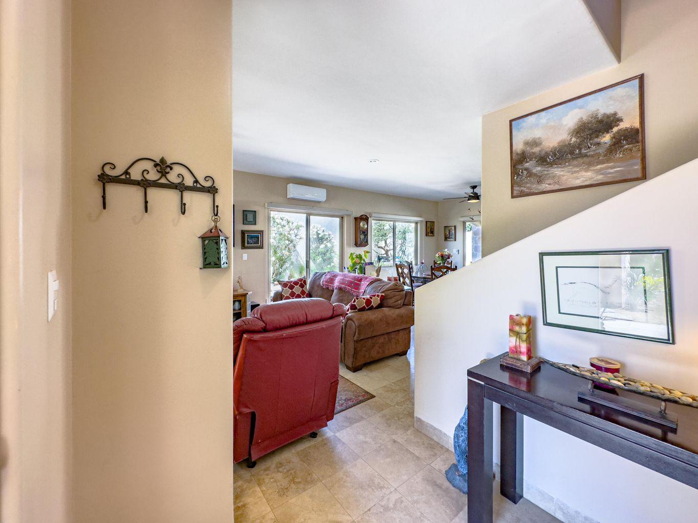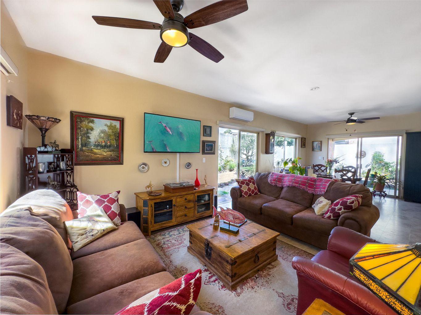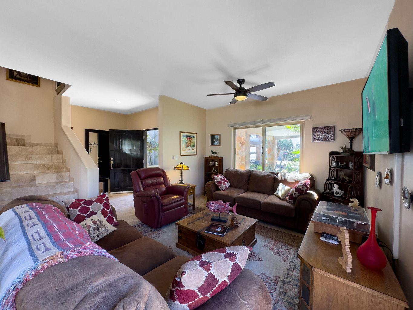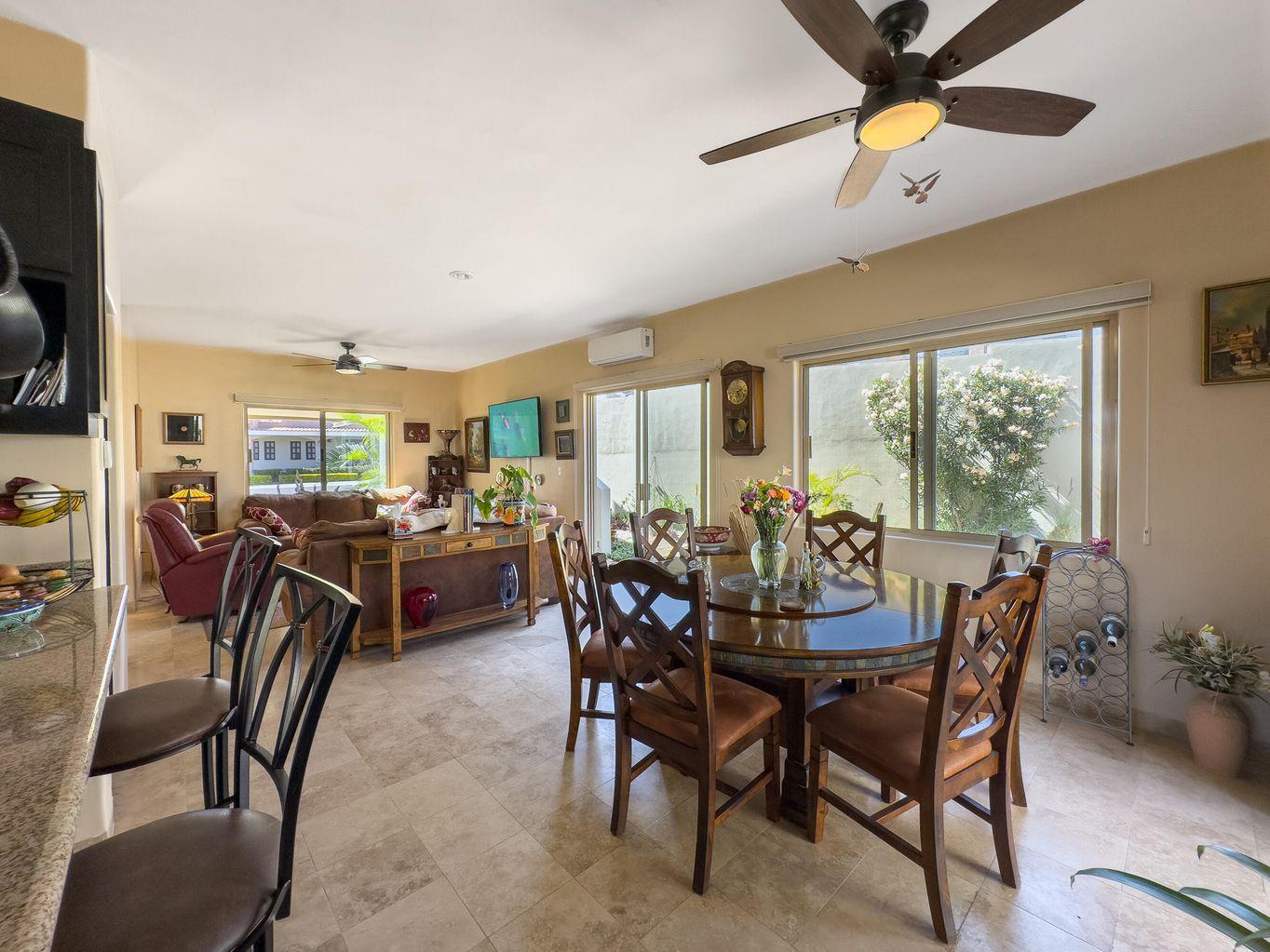 Casa Nano. A 3BD/2.5BA home set on one of the largest lots in the community, ideally located across from the clubhouse. Enjoy a private patio, spacious front and back yards, and room to add a pool or expand. The oversized rooftop terrace offers unobstructed panoramic ocean and sunset views that will never be blocked. Move in ready and fully furnished, perfect as a full time residence, vacation retreat, or investment. Ventanas offers low HOA fees, 24/7 security, pool, gym, playground, and clubhouse just minutes from downtown Cabo and the beach.