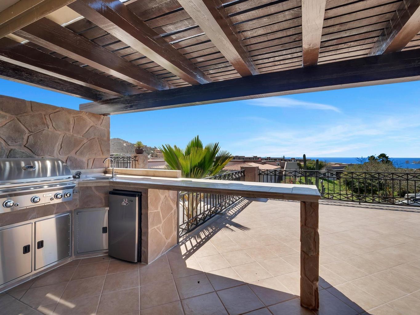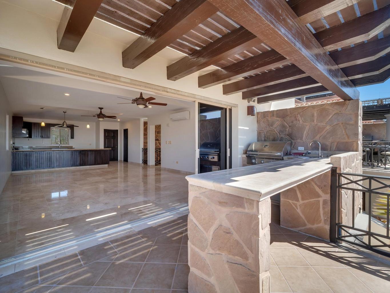 Experience upscale living at Casa Perla, a stunning corner Casa Grande in Ventanas Phase 1 with sweeping views of the blue Sea of Cortez, the iconic Arch, and city lights. This beautifully designed home features an open-concept living area with vaulted ceilings and a flexible office space that can serve as an additional sleeping area. Pocket doors open to a spacious terrace with grill and wet bar, perfect for entertaining while enjoying the views. All three bedrooms are privately located on the ground level for comfort and tranquility. The home also offers direct garage access and a spectacular rooftop terrace with breathtaking 360° panoramic views. Located within Ventanas, a community known for excellent amenities and quality living, Casa Perla is ideal as a full-time residence or rental