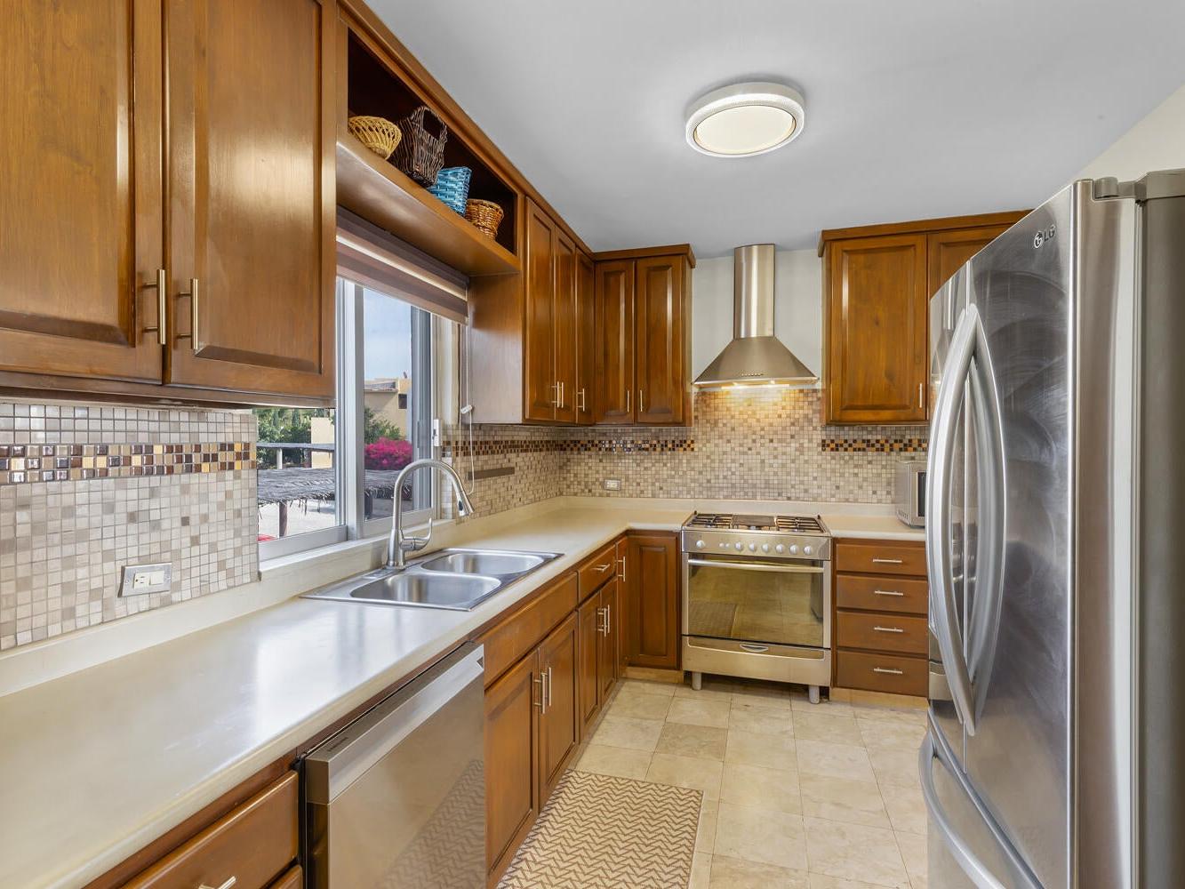 Imagine waking up in the heart of Villas Del Tezal, knowing the vibrant energy of Cabo San Lucas is just five minutes away. Your experience begins the moment you arrive at the entrance, greeted by a brand-new custom front door that sets a sophisticated tone for this unique residence. Offered at $325,000 , this rare three-bedroom, 2.5-bathroom townhome provides the expansive space of a full residence at a price point typically reserved for much smaller two-bedroom condos. Because this is an end-unit with only one adjacent wall, your home remains a quiet, peaceful sanctuary tucked away from the world.