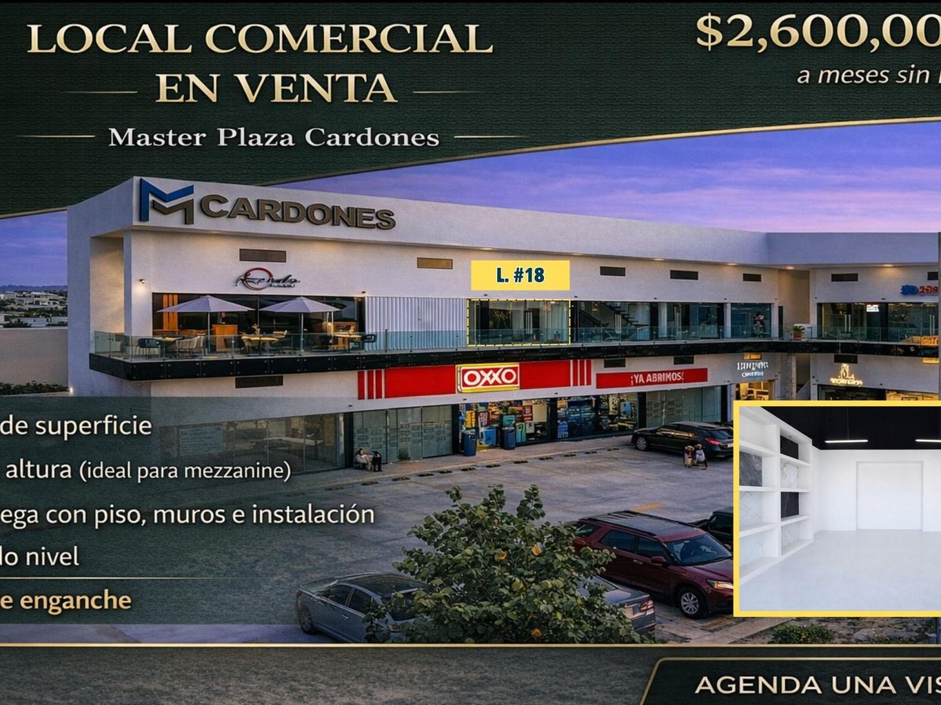 Commercial unit for sale located in Master Plaza Cardones - Unit #18 (Second Floor, Phase 1), positioned on Avenida Jacarandas, one of the fastest-growing residential and commercial corridors in Cabo San Lucas.