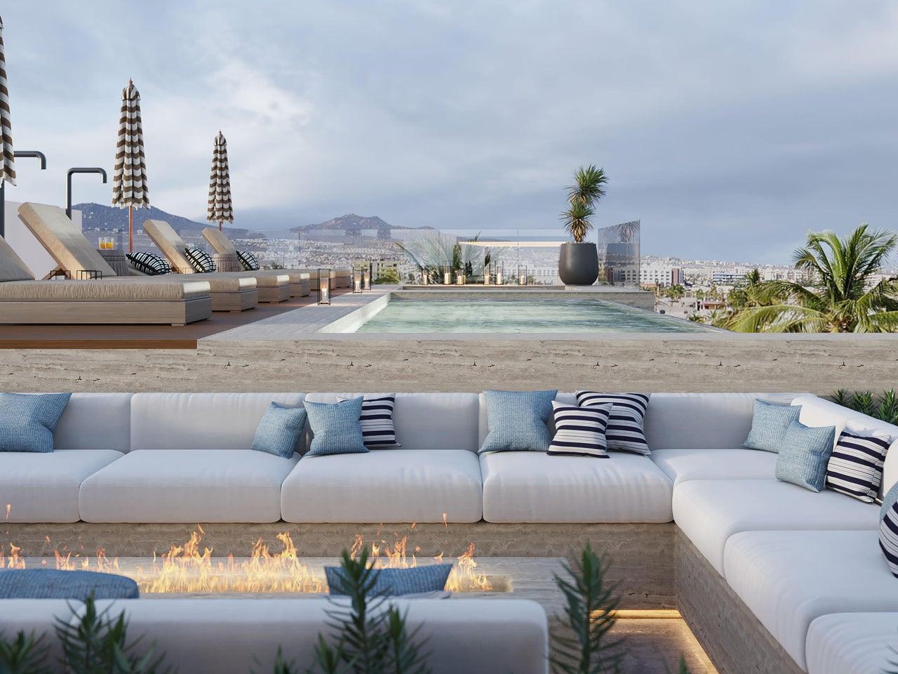 Best Suites, comfort in the heart of San Lucas. Prime location just a 6-minute walk distance to Marina San Lucas. A complex with only 17 units offering an exceptional opportunity for investment and short or long-term rentals. Modern design. Infinity pool and roof garden with Marina view. Includes kitchen, walk-in closets, A/C, laundry area, storage room, 1 parking spot.