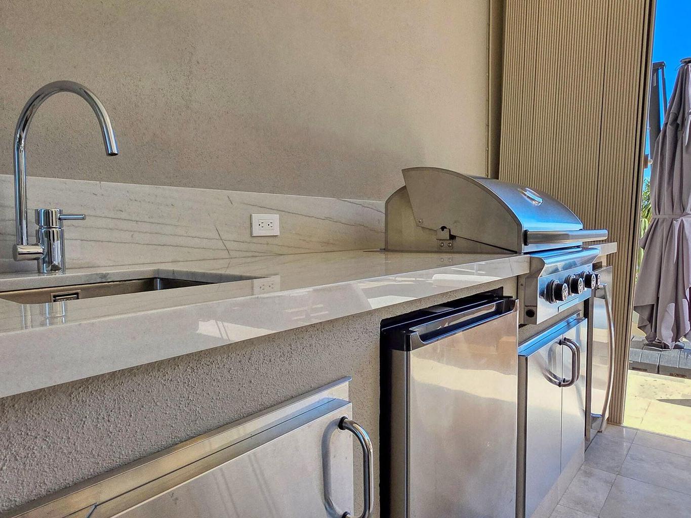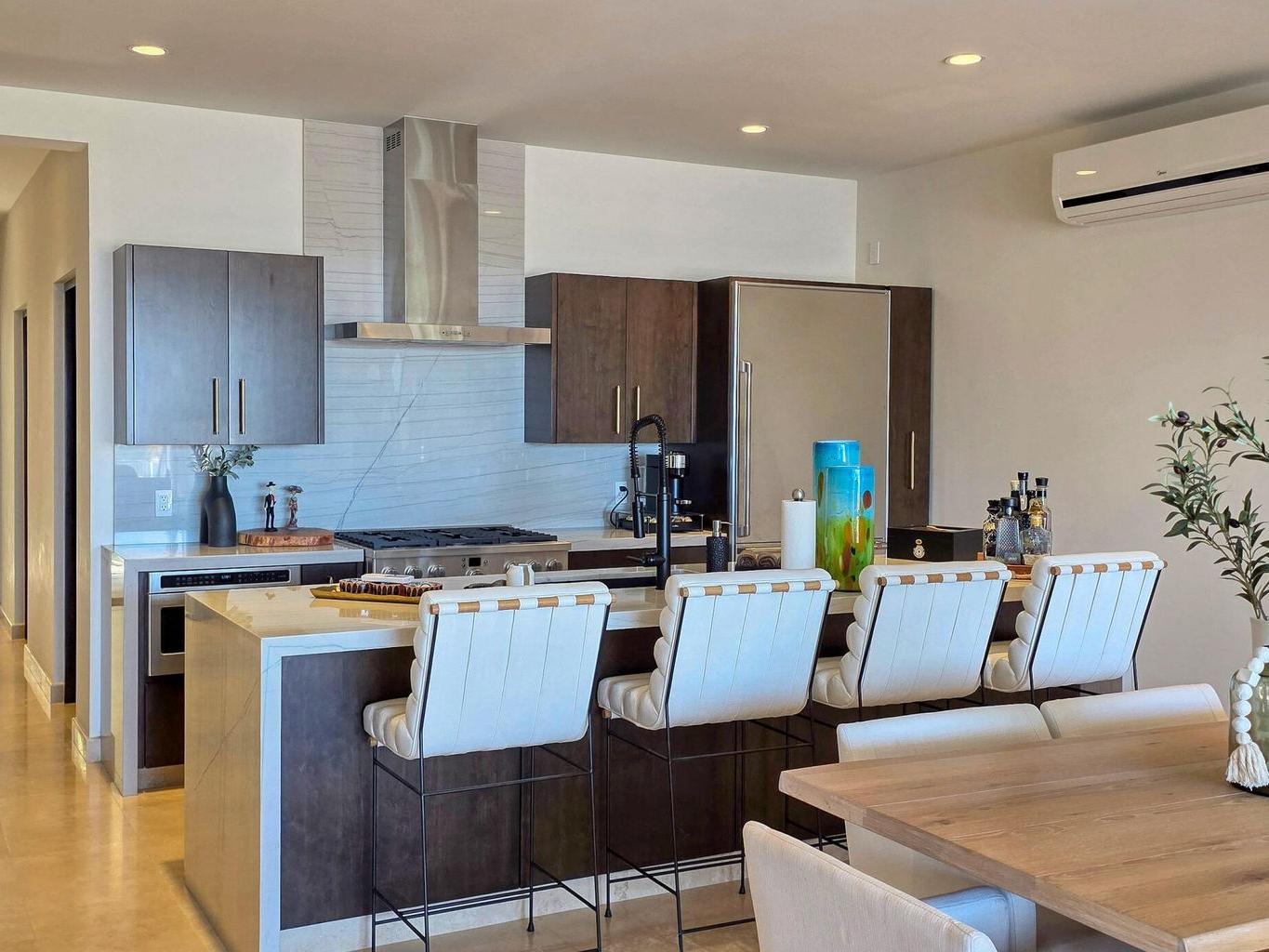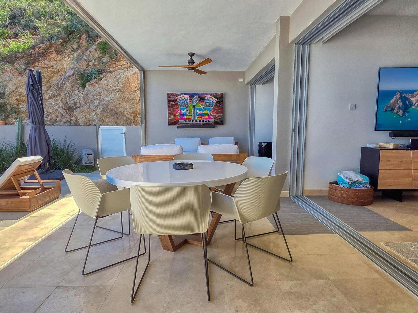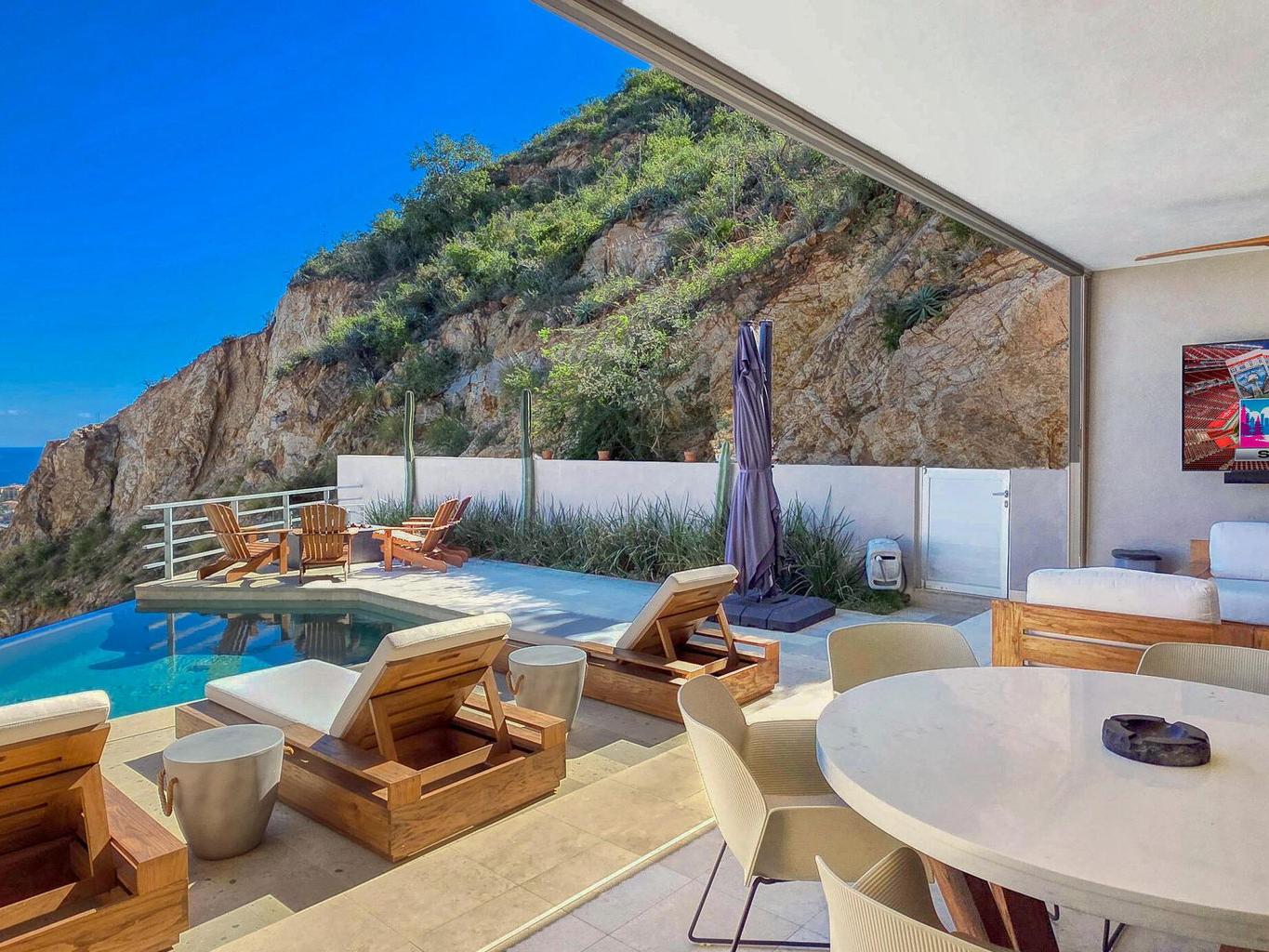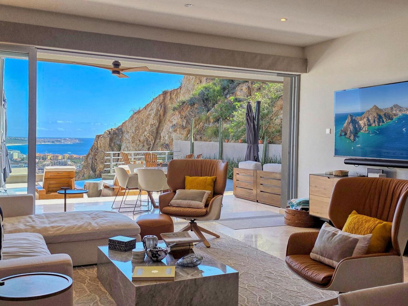 Cascadas 904 is only one of two condos in the exclusive community within Pedregal that has its own private pool. Featuring an expansive outdoor entertaining area that includes all of the upgrades you want (fire-pit, outdoor grilling/kitchen and tv/lounge area). Professionally decorated in all three bedrooms and baths. Upgraded appliances (Cafe) throughout the kitchen, this beautiful condo is perched up above downtown Cabo and features a great ocean view as well. It is an end unit that allows for more privacy, peace and quiet. Enjoy all of the amenities within Pedregal as well as the community amenities (pool, well equipped fitness center, clubhouse and meeting area). Large two car garage with two more additional parking spaces. Don't miss out on this well appointed condo.