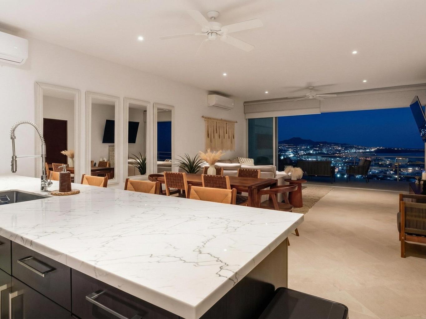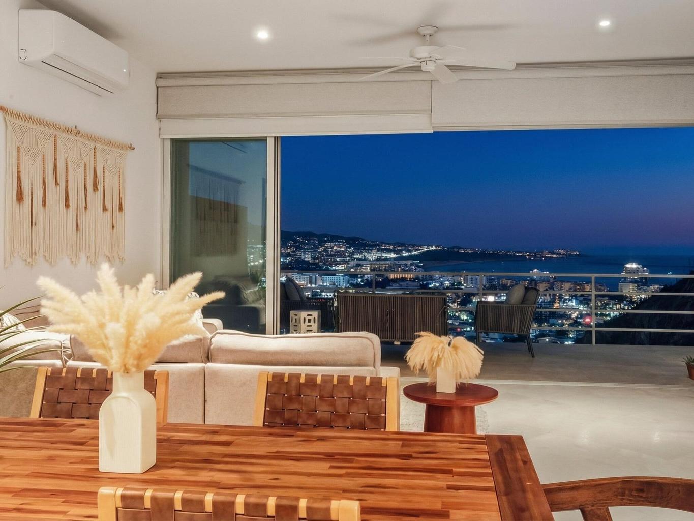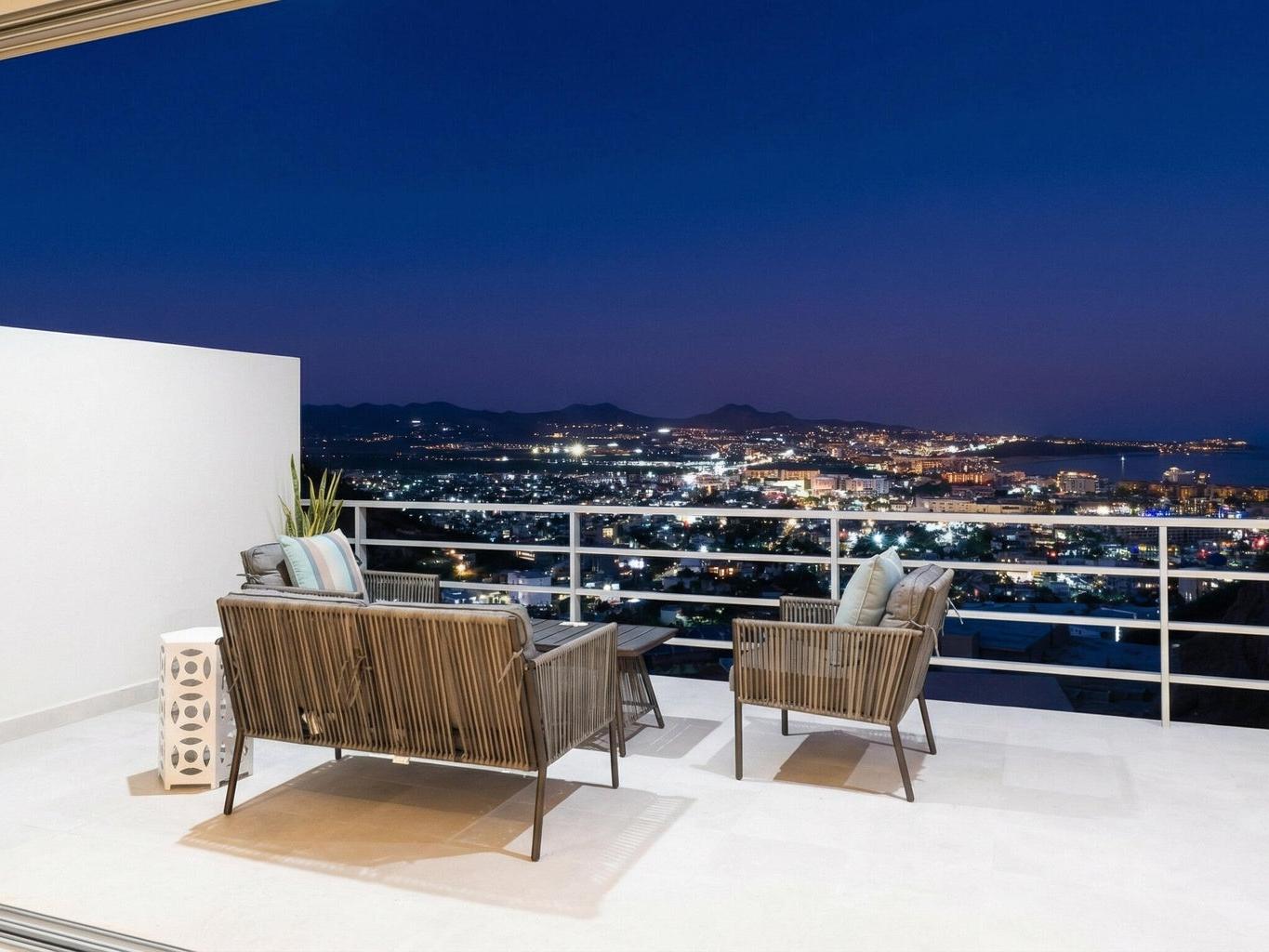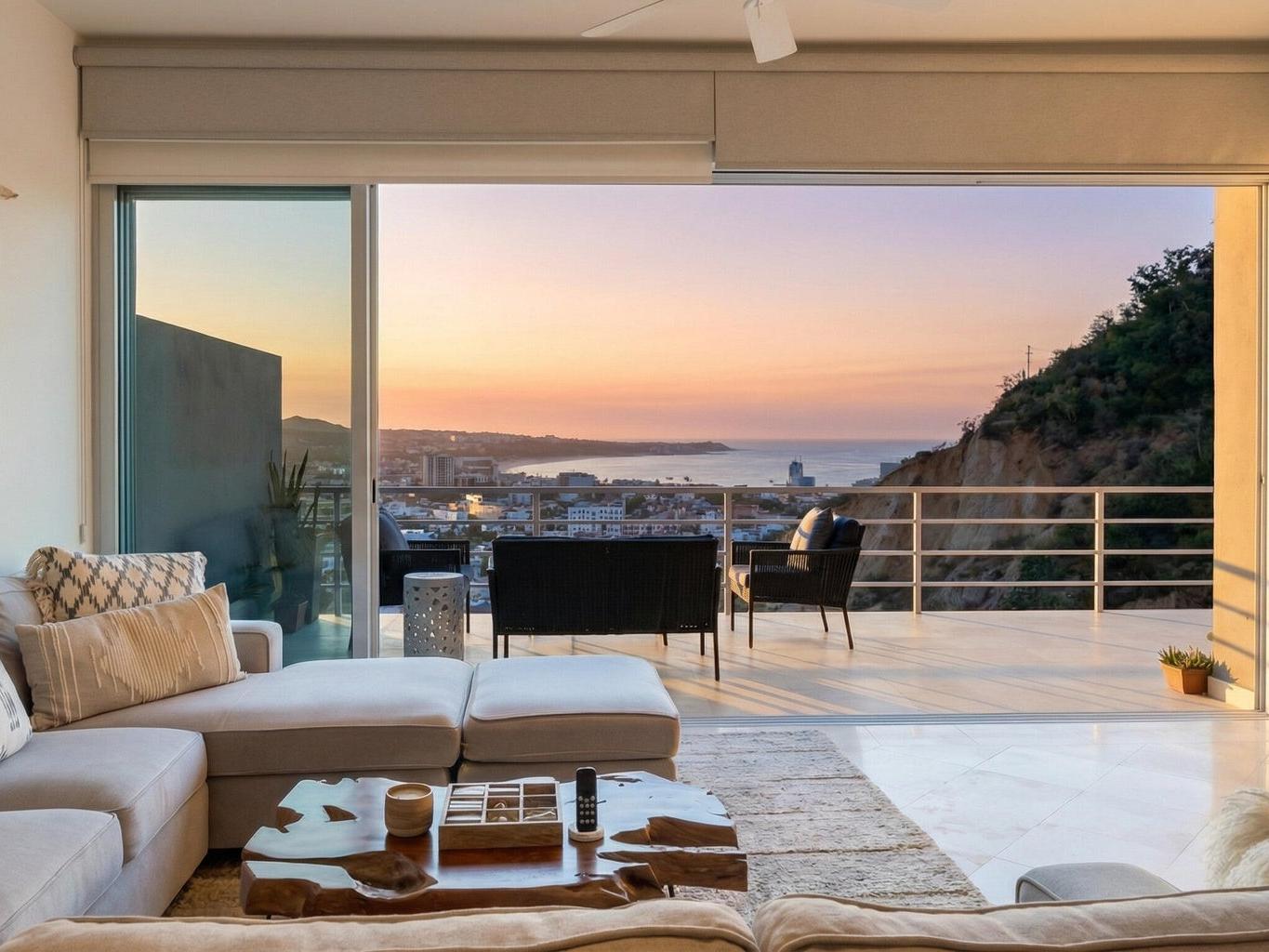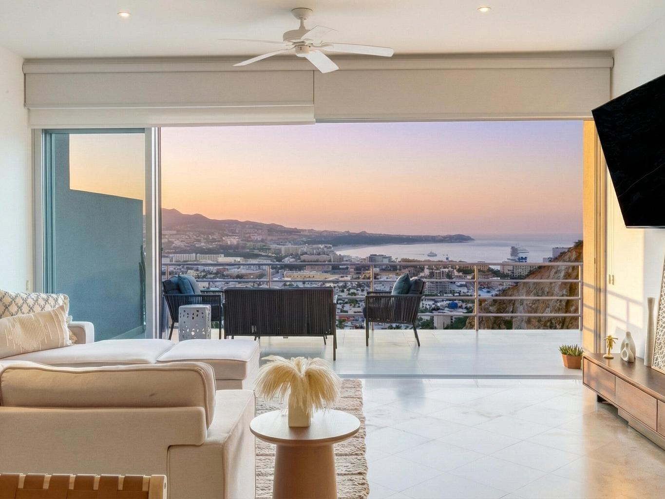 Delivered in the newest building of Cascadas in 2023, spanning over 1,700 sq. ft. of air-conditioned living, the 2-bedroom, 2-bath fully furnished residence features uninterrupted views running straight down Cabo's coastline, delivering world-class sunrises, dramatic sunset skies, and brilliant nighttime city views with nightly fireworks. With no neighbors above and a uniquely quiet positioning, the penthouse offers a level of seclusion rarely achieved in condominium living.