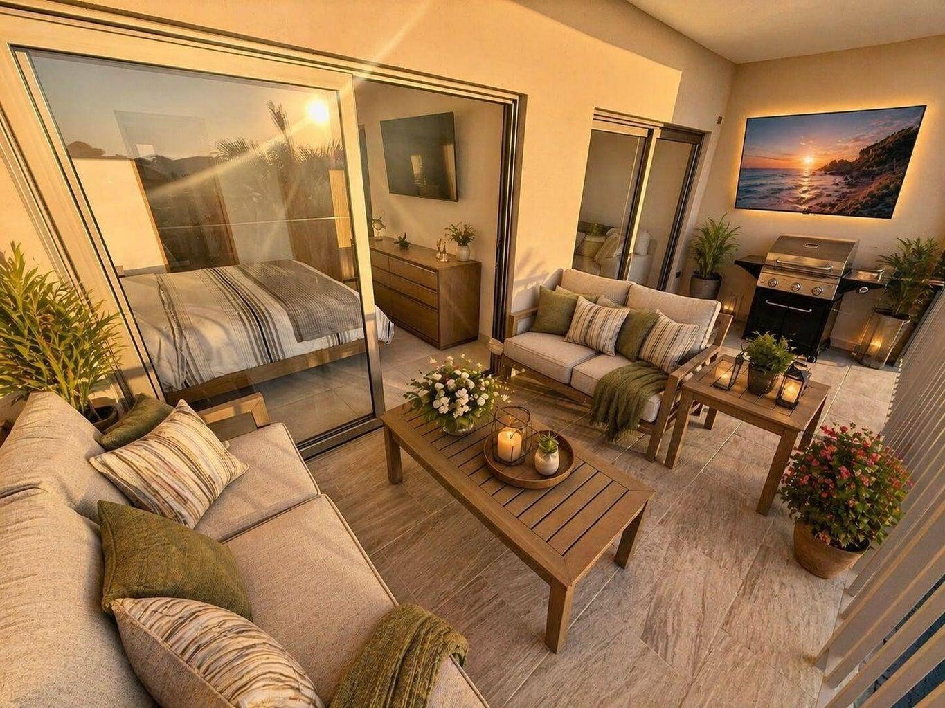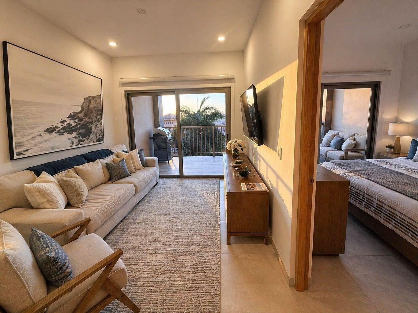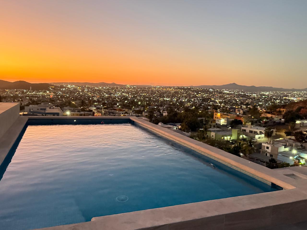 The rooftop amenities elevate the lifestyle experience, featuring a swimming pool, gym, and panoramic sunset views that blend relaxation with the vibrant energy of Los Cabos.