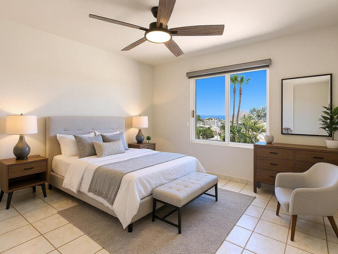 Top-floor corner condo with ocean views, just minutes from downtown, restaurants, and services. Two of the bedrooms enjoy ocean views. Recently renovated, the unit feels fresh and updated, with new appliances and upgraded finishes throughout. Spacious bedrooms offer ample closet space, making it ideal for full-time living or rental use. Located in a low-density community with low HOA fees. Includes a covered 2-car garage, a rare feature in this area. Well-priced 3-bedroom with views and convenience. HOA and property taxes listed in pesos. Sold unfurnished. Some photos show virtual staging to illustrate potential use.