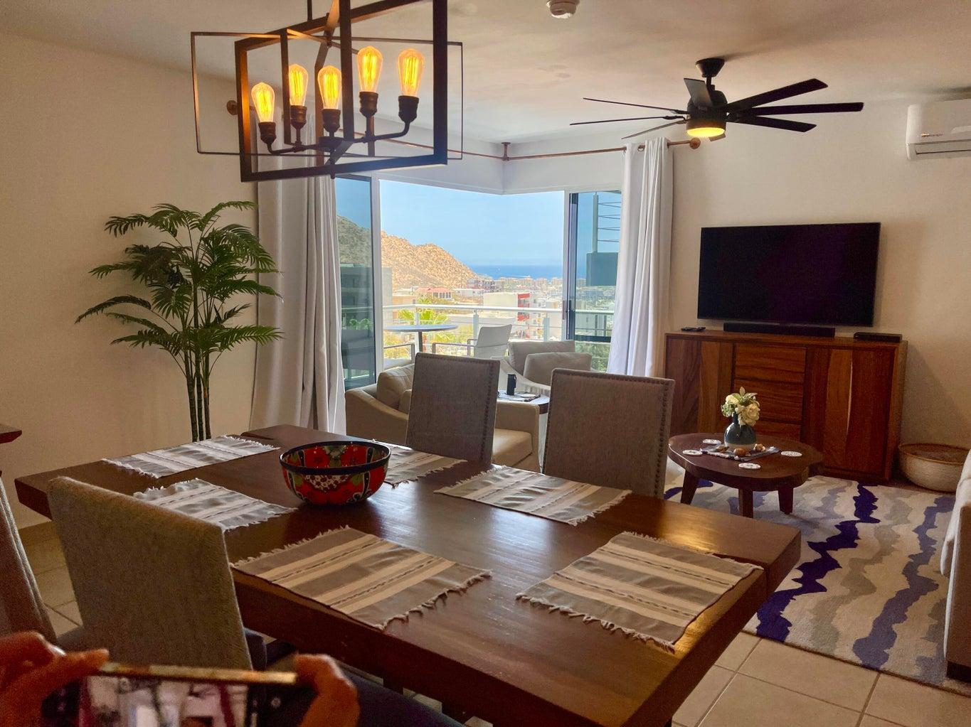 Located in one of Cabo's most sought-after communities, this 2-bedroom, 2-bathroom condo offers spectacular, unobstructed views of the Marina, Sea of Cortez, and downtown Cabo from its private terrace.