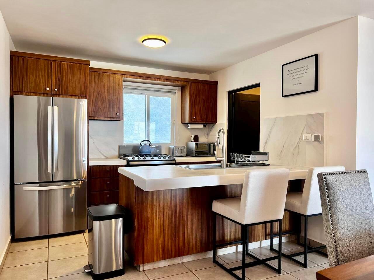The unit features a remodeled parota wood kitchen, mini-split A/C units, a laundry room, and comes fully furnished — ready to move in or rent out.