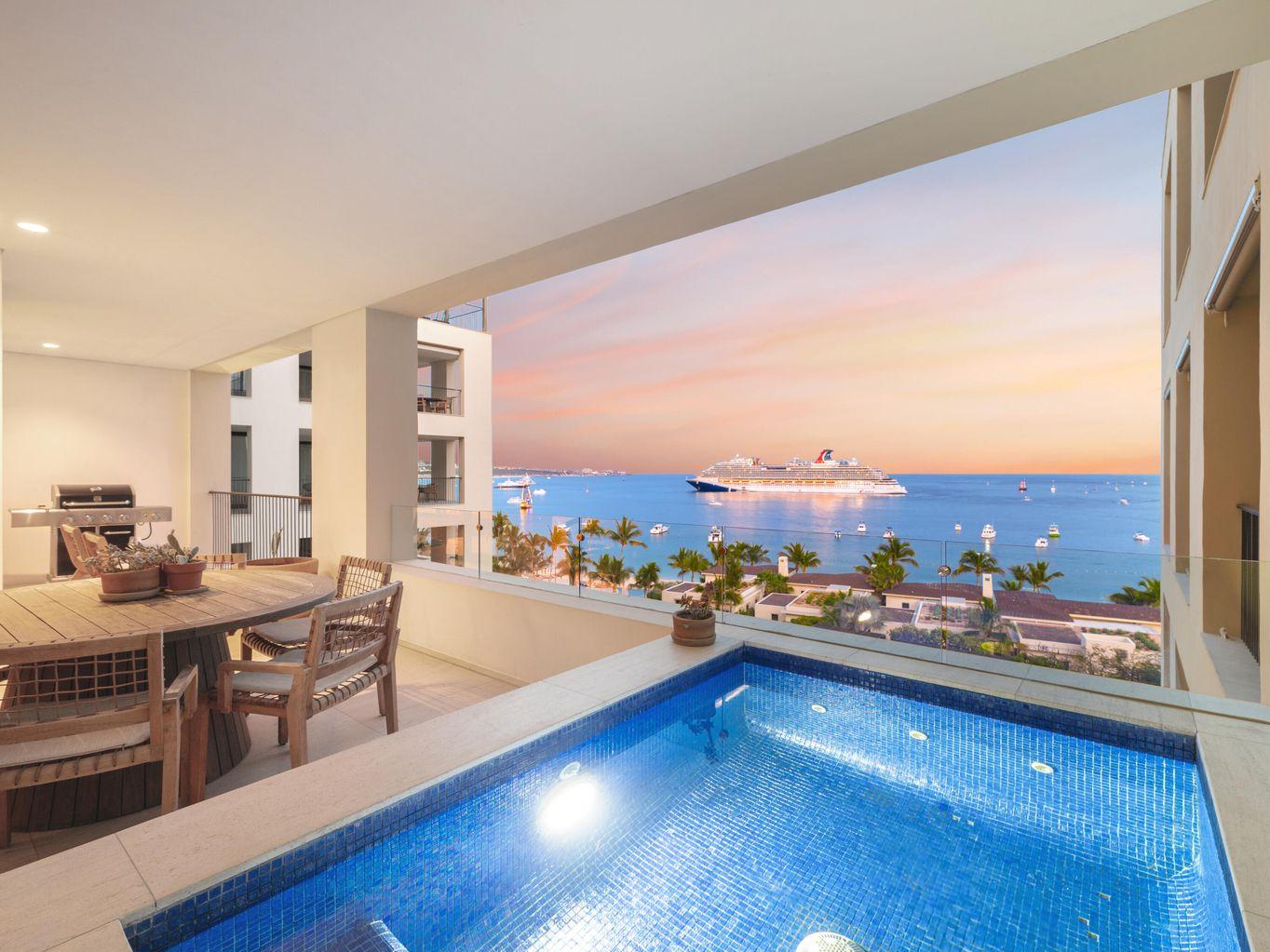 The prime location combines privacy and walkable access to the marina, dining, and the Cabo lifestyle. Residents enjoy access to resort-style amenities, including pools, wellness and fitness facilities, concierge services, and on-site dining.