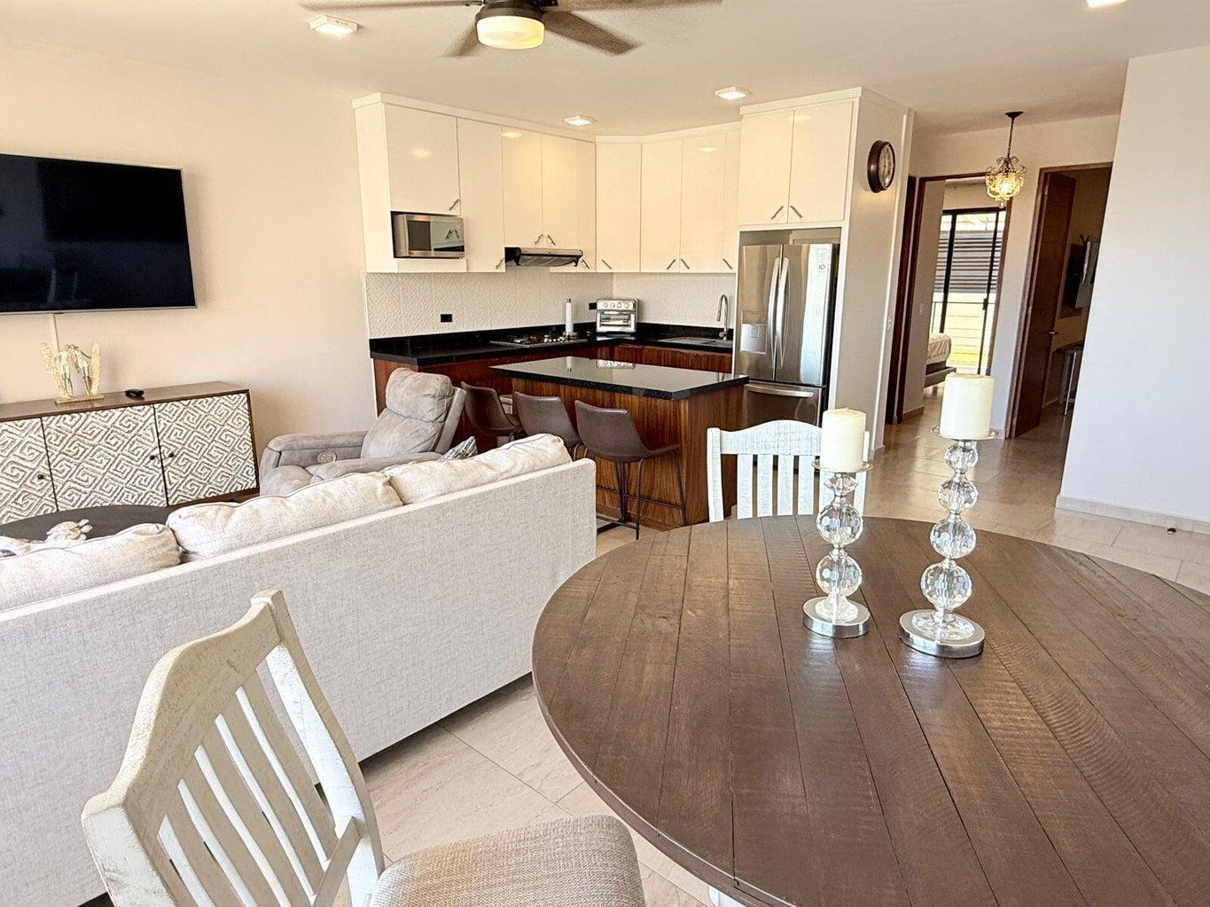 This beautiful apartment for sale offers a comfortable and functional space, ideal for enjoying a relaxed lifestyle. It features a spacious living and dining area that seamlessly connects with the kitchen, creating an open and inviting atmosphere. The unit includes two well-lit bedrooms and two full bathrooms, providing both comfort and privacy.