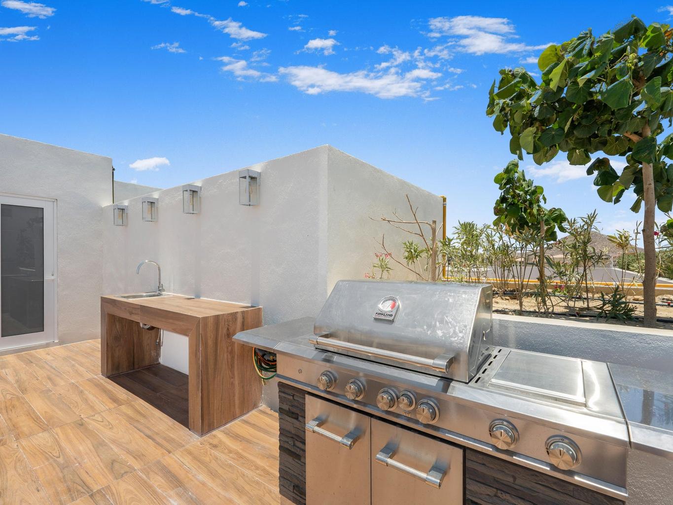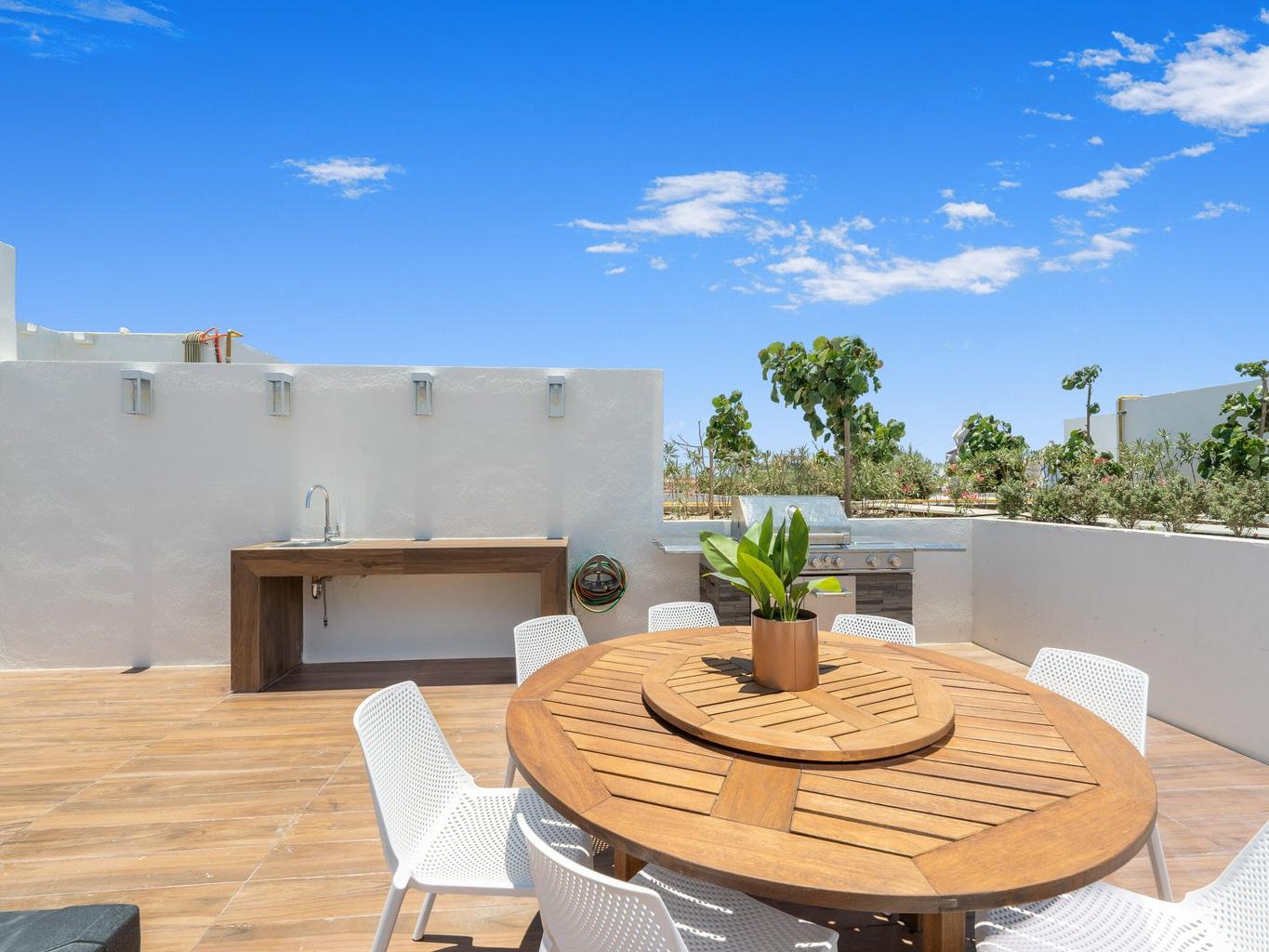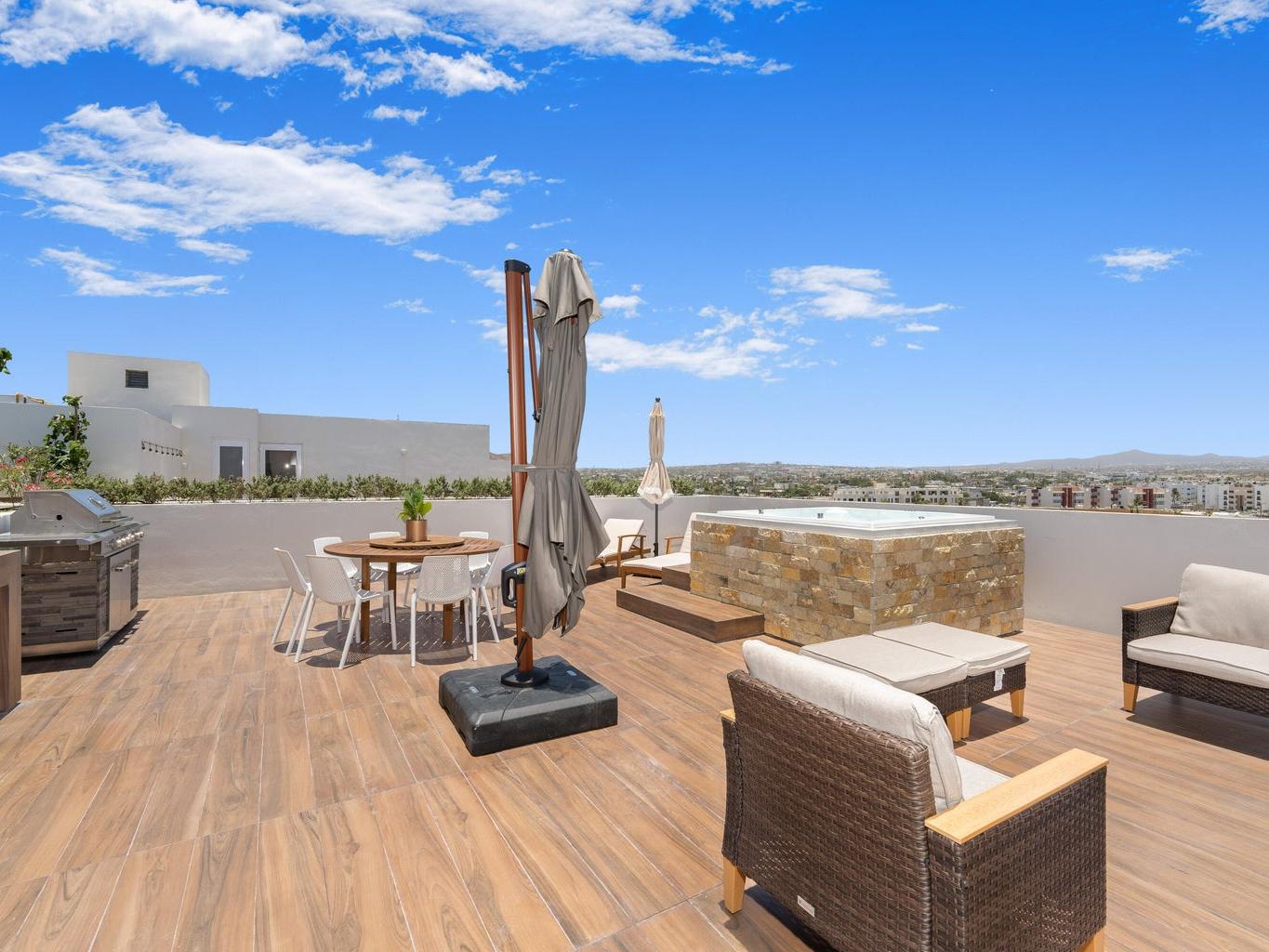 The private rooftop offering a fully BBQ area, jacuzzi, lounge space, and a full bathroom, perfect for entertaining and enjoying with family and friends.