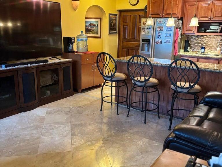 Located on the 4th floor in the A building of Marina Sol Resort & Spa, this 873 square foot corner unit, one bedroom, one bathroom condo is well set up to be lived-in full or part time, with the option to also do short-term vacation rentals on days when it would be available. It has been remodeled with marble floors, granite countertops and quality cabinets and finishes as well as lots of added extra storage space. The bathroom and kitchen areas were also expanded which greatly adds to the enjoyment and usability of the condo. The condo comes completely furnished as is a turnkey purchase, some of the furnishings include a new 86-inch TV and a brand new GE washer and dryer.