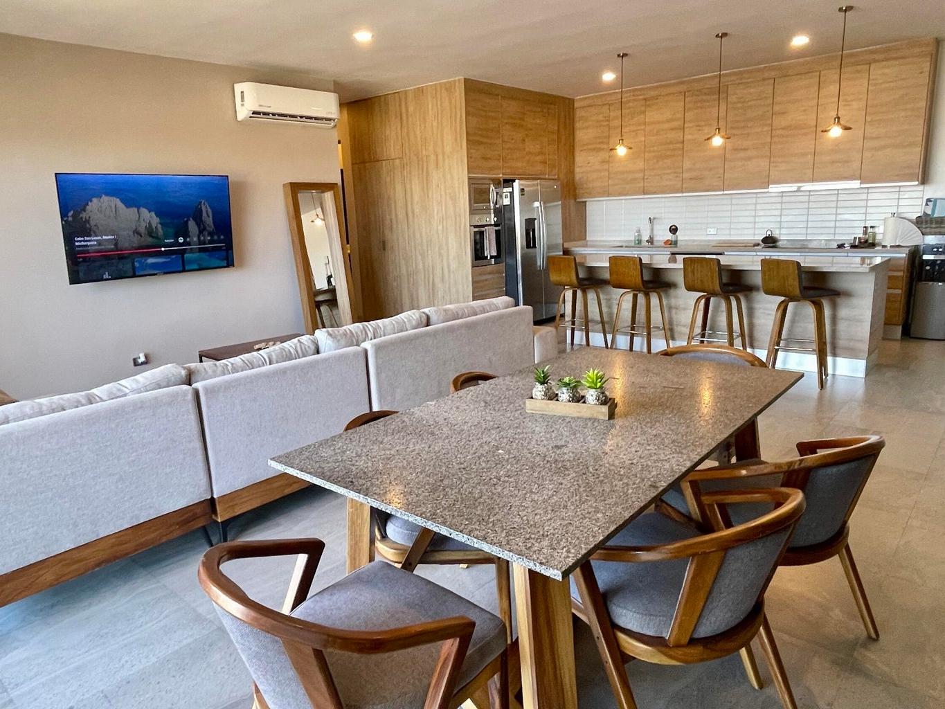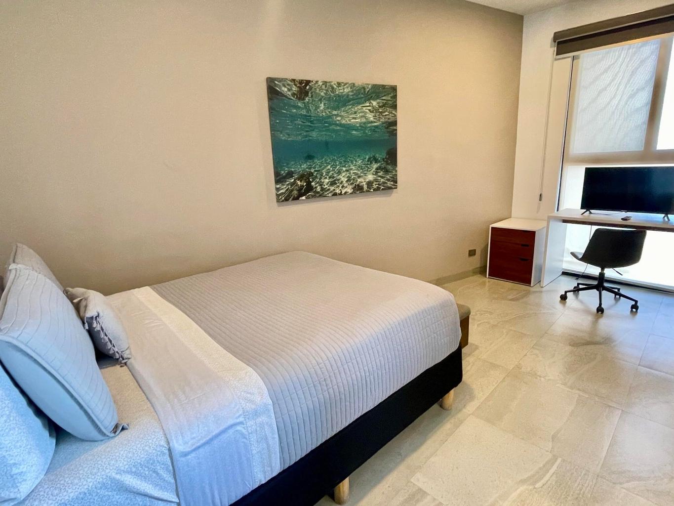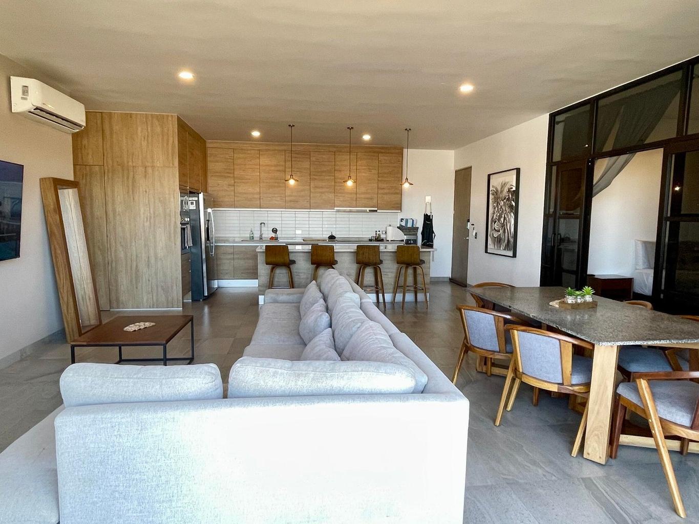 Discover modern comfort in this stylish 3-bedroom, 2-bathroom turn-key condo with contemporary design and high-end finishes. The open layout feels spacious and inviting, with city views and a partial ocean glimpse. Fully equipped with quality appliances, this home also includes two parking spaces and a large 9.5 m2 storage unit located on the same floor, just steps from the door.