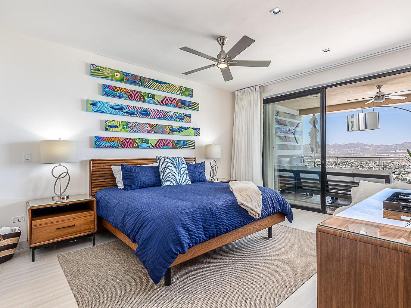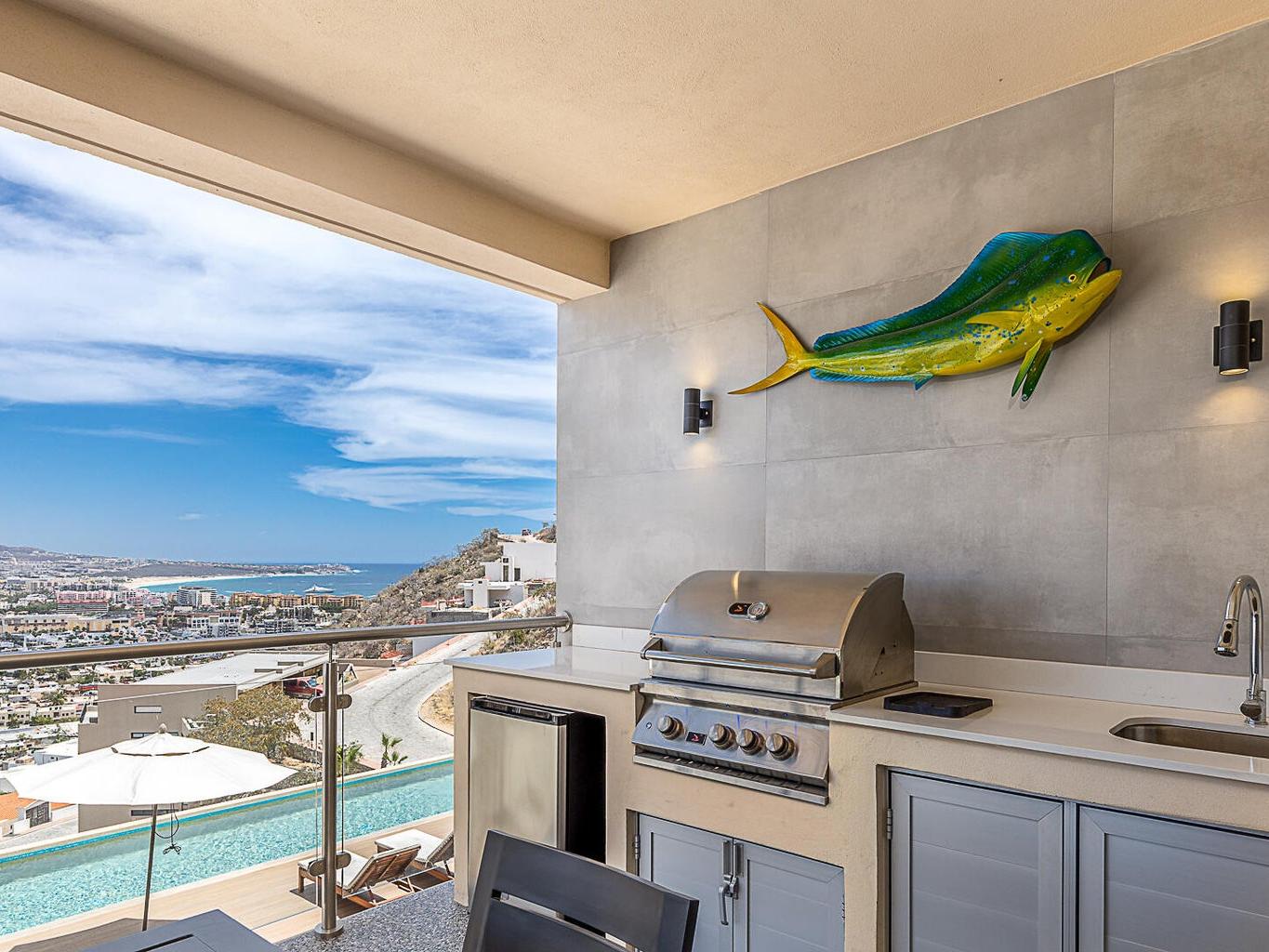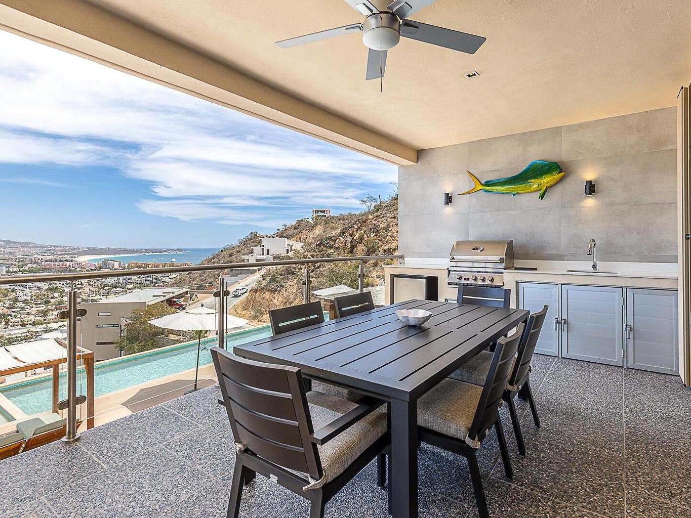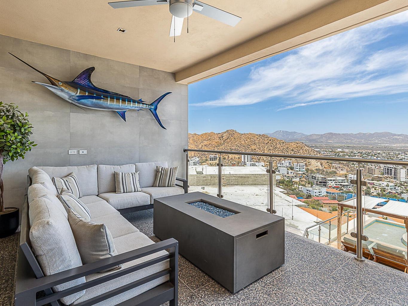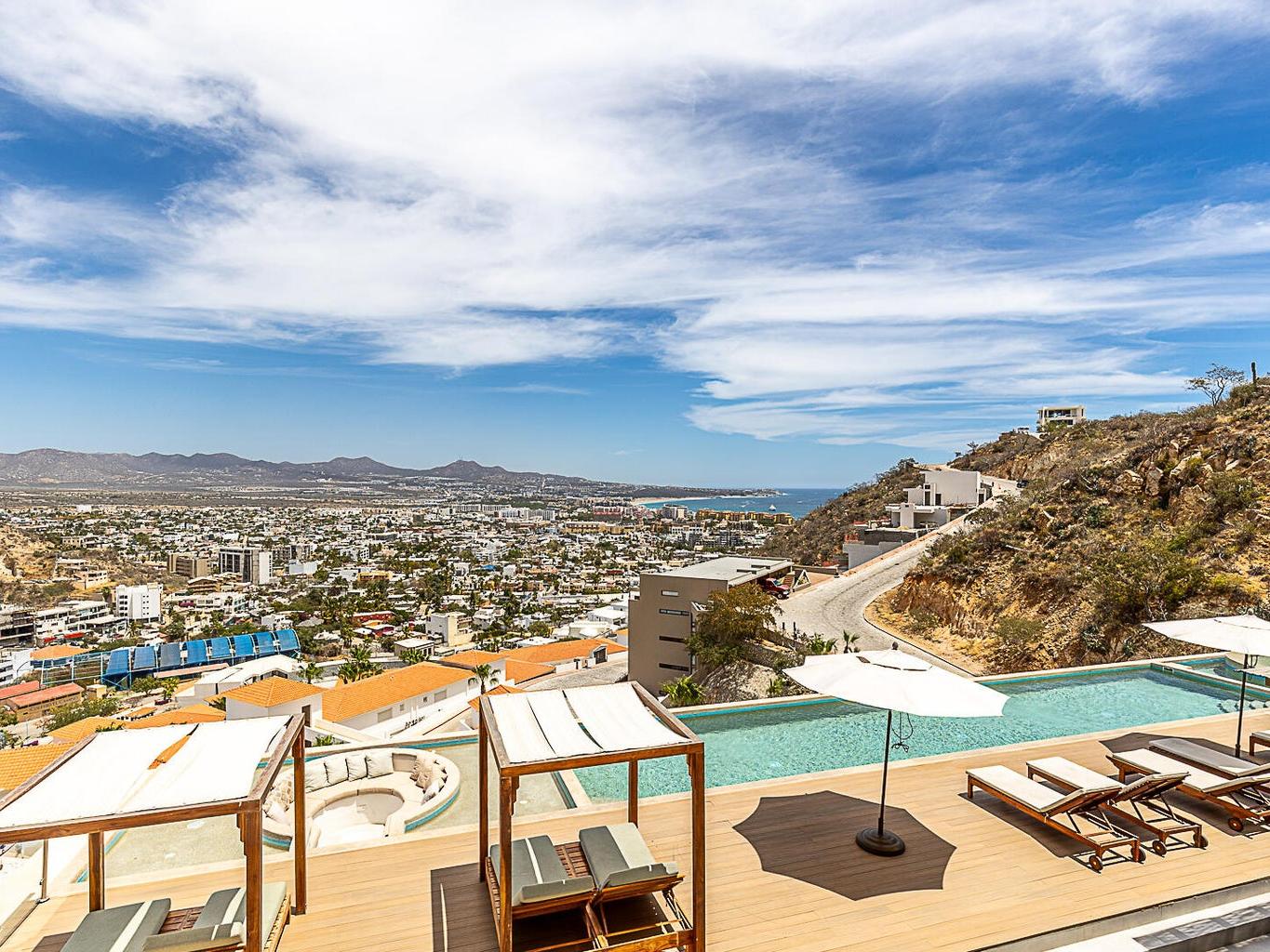 Located within the Monteluna residences in the Pedregal community of Cabo San Lucas, this newly completed seventh-floor condominium offers wide-ranging views of the city, marina, and bay from a private terrace designed for outdoor living. The floor plan includes three bedrooms and three and a half bathrooms across 2,000 sq ft of space. The residence is offered turnkey and includes notable upgrades such as high end furniture, double-pane hurricane-rated windows and doors, Hurricane Shutters, built-in outdoor BBQ, reverse osmosis water filtration, fiber optic connectivity, non-slip exterior flooring, ceiling fans, fire pit and two assigned covered parking spaces.