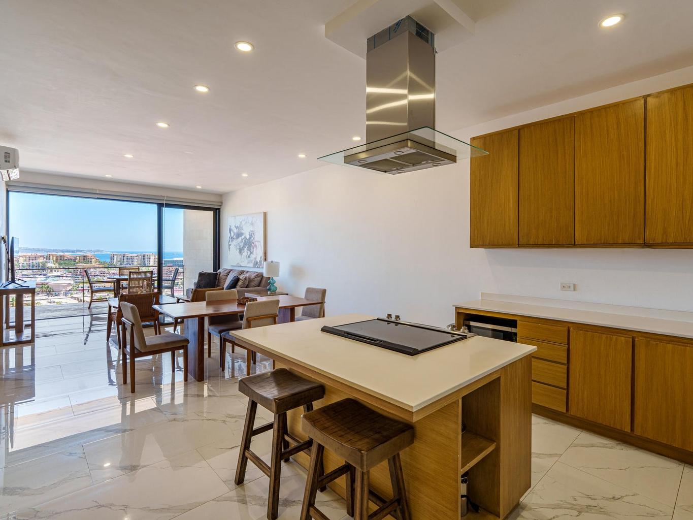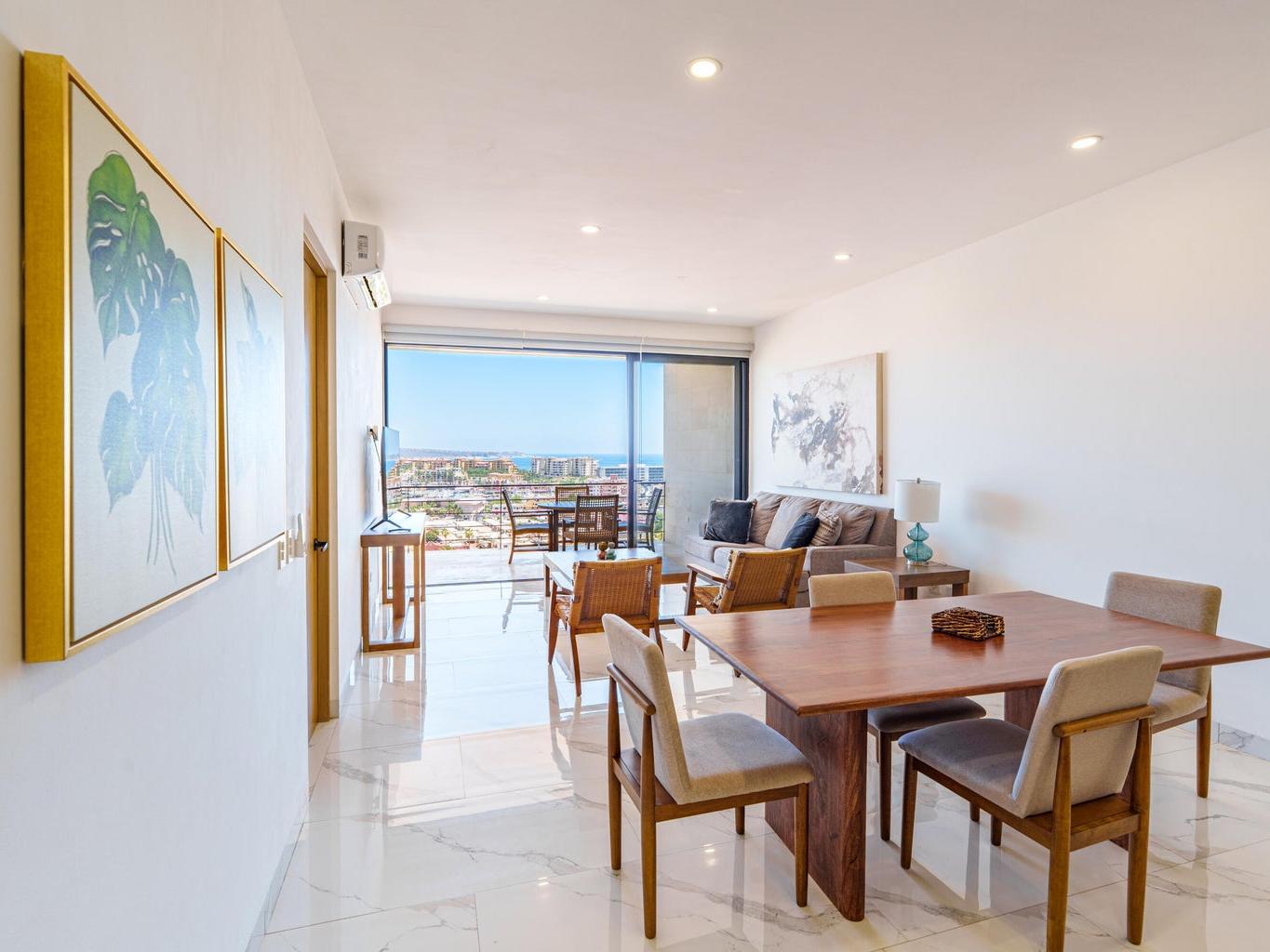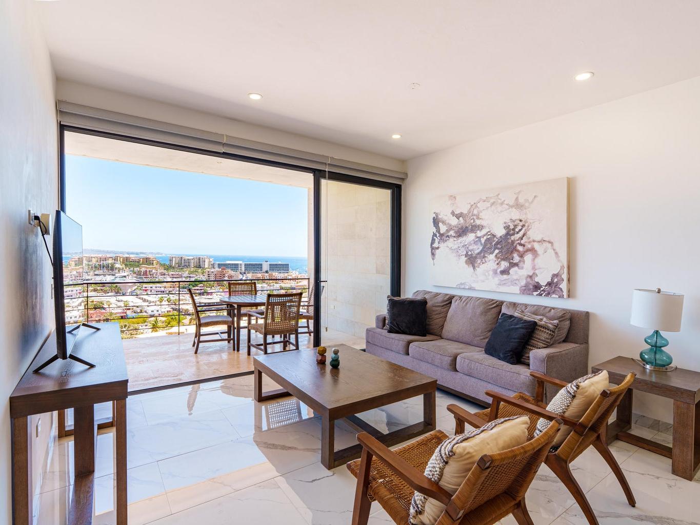 Located within the exclusive Montemar Residences in Pedregal, Cabo San Lucas, this beautifully appointed third-floor condominium offers the perfect blend of elevated views, modern design, and unmatched walkability. Featuring 2 bedrooms and 2 bathrooms, the residence showcases contemporary finishes, an open-concept layout, a fully equipped kitchen, and a spacious terrace with panoramic views of Cabo San Lucas Bay, the marina, and city lights. Just steps from downtown Cabo, the marina, world-class dining, and nightlife, this home offers the rare combination of ocean-view living with true convenience. Montemar features elevator access, rooftop pool, jacuzzi, gym, lounge areas, and 24/7 security, making it ideal as a full-time residence, vacation home, or investment property.