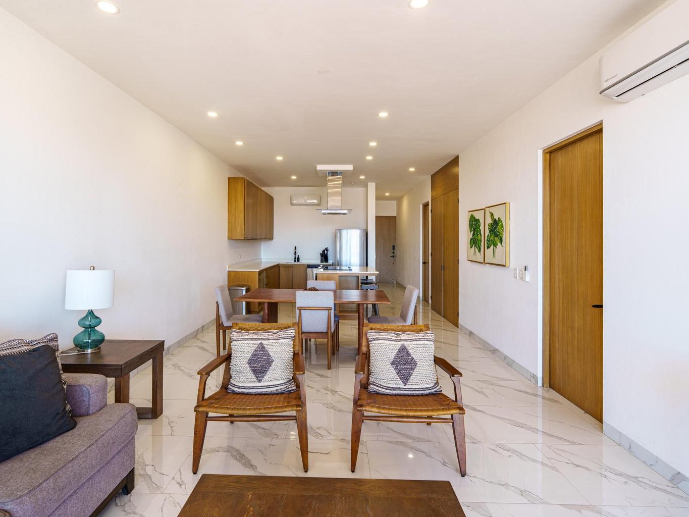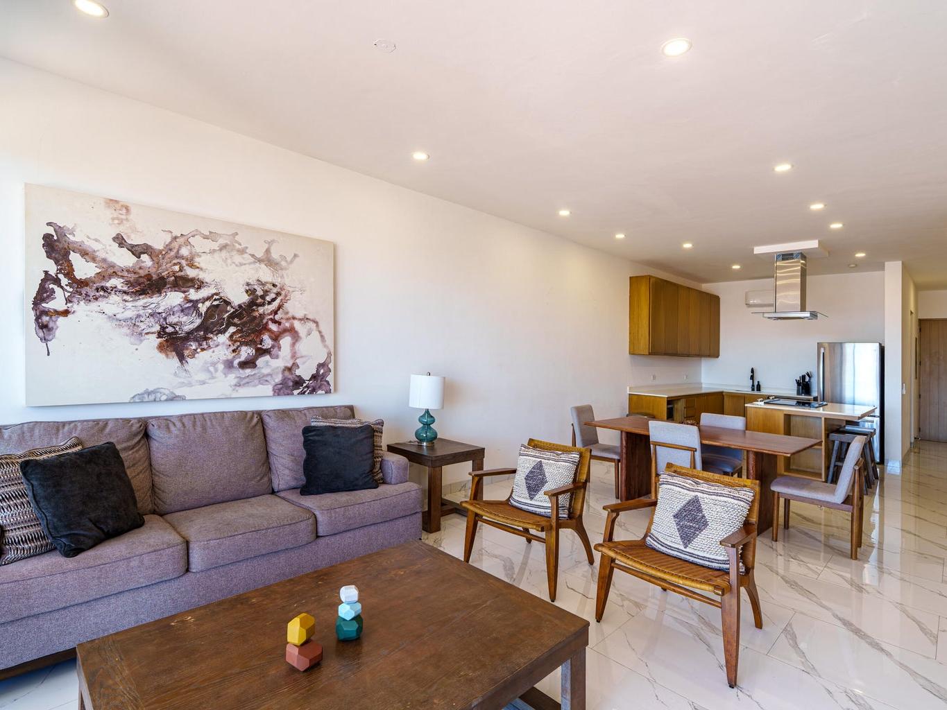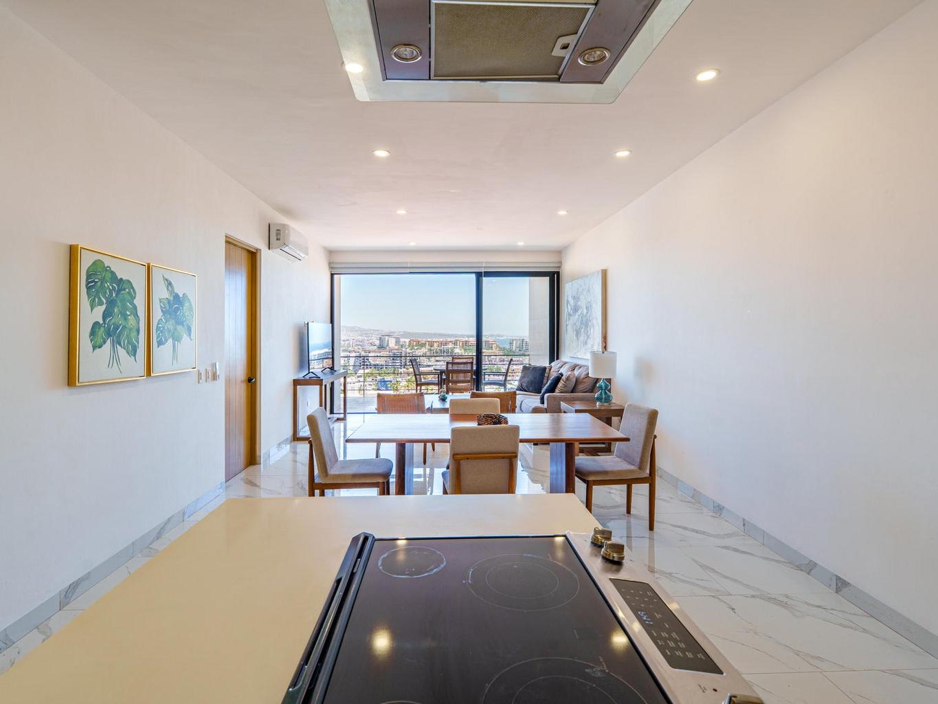 Located within the exclusive Montemar Residences in Pedregal, Cabo San Lucas, this beautifully appointed third-floor condominium offers the perfect blend of elevated views, modern design, and unmatched walkability. Featuring 2 bedrooms and 2 bathrooms, the residence showcases contemporary finishes, an open-concept layout, a fully equipped kitchen, and a spacious terrace with panoramic views of Cabo San Lucas Bay, the marina, and city lights. Just steps from downtown Cabo, the marina, world-class dining, and nightlife, this home offers the rare combination of ocean-view living with true convenience. Montemar features elevator access, rooftop pool, jacuzzi, gym, lounge areas, and 24/7 security, making it ideal as a full-time residence, vacation home, or investment property.