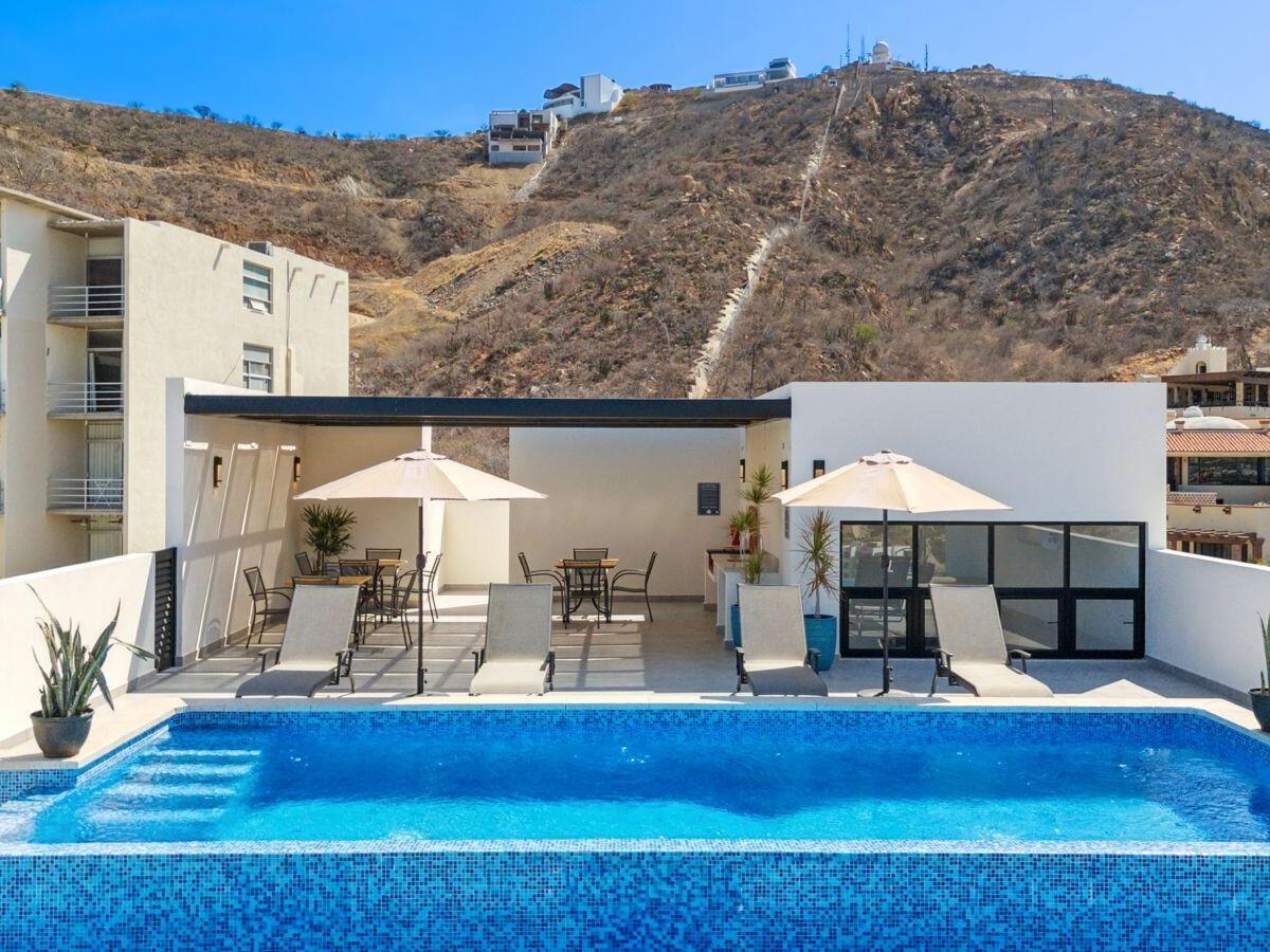 Palma Blanca is a unique condominium development located in the heart of Cabo San Lucas, next to Pedregal de Cabo San Lucas. Couple of minutes walk downtown, this development is set apart from others in the area because it offers luxurious accommodations at an affordable price. Low density with 15 units. 12 of them being 2 BR | 2 BA, laundry room. Including an elevator, common pool and deck. Additionally, Palma Blanca is situated in a prime location that provides residents with stunning views of Cabo San Lucas Bay.