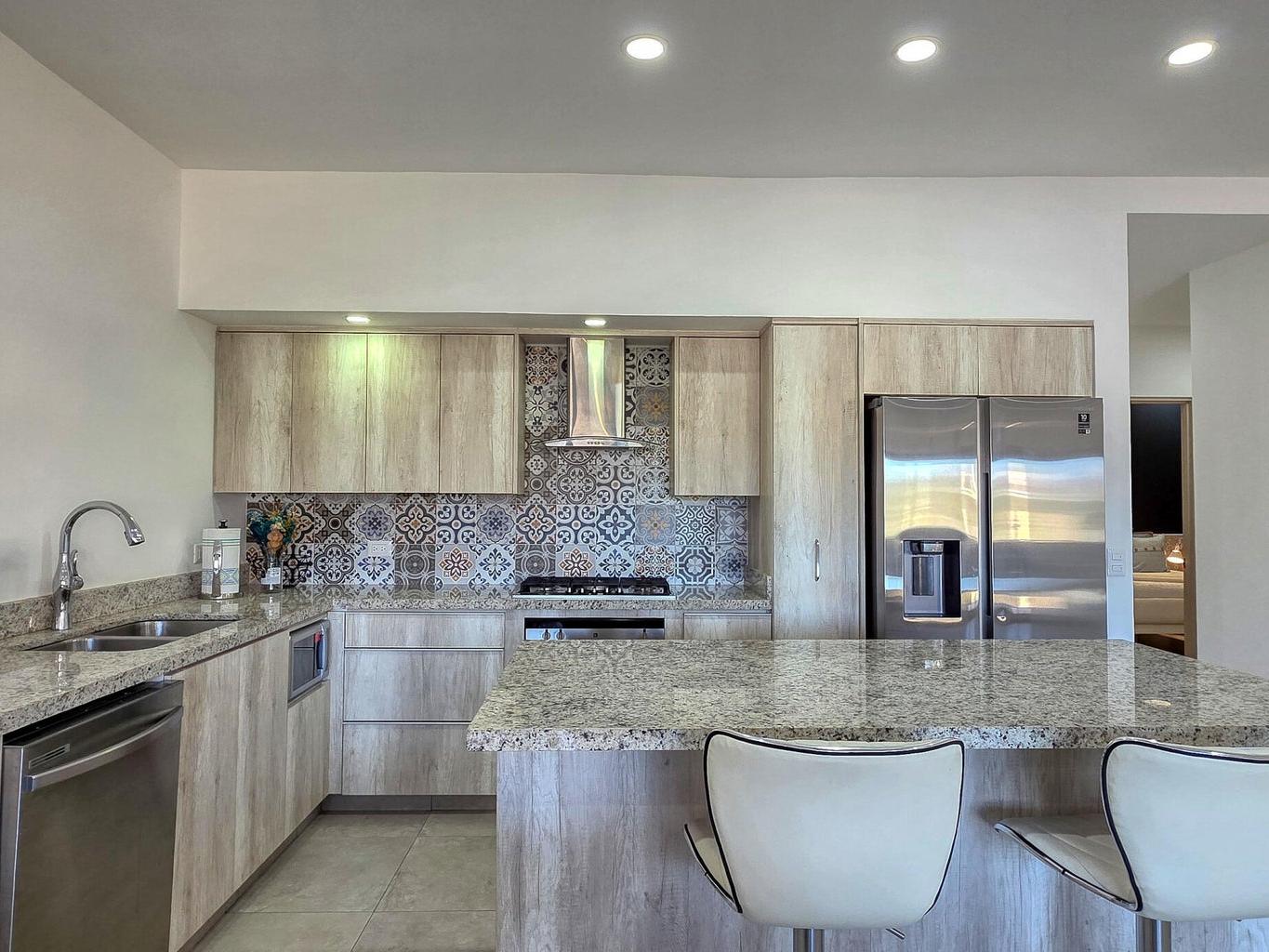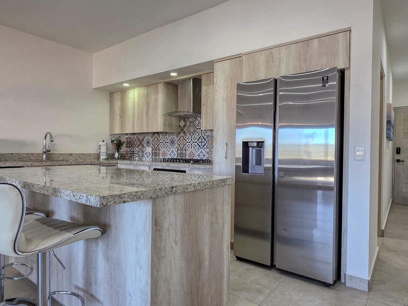Experience elevated coastal living in this fully equipped 3-bedroom, 3-bathroom condo located in the exclusive Pedregal Towers of Cabo San Lucas. Each bedroom features built-in closets and abundant natural light, while the bathrooms are outfitted with premium fixtures and modern finishes. The gourmet kitchen is designed for both function and style, with high-end appliances, granite countertops, and custom cabinetry that flow seamlessly into the open-concept living and dining areas.
