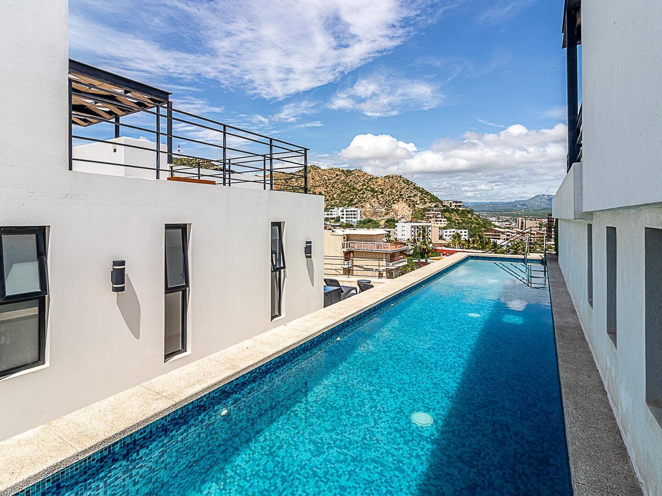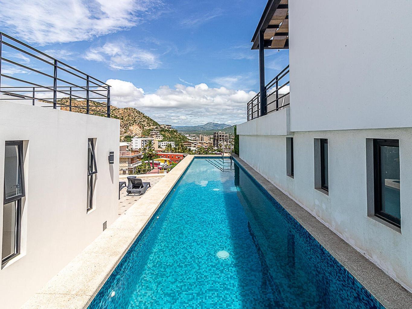 desalinated water. An expansive terrace showcases sweeping views of downtown Cabo and the marina, creating the perfect setting for entertaining or