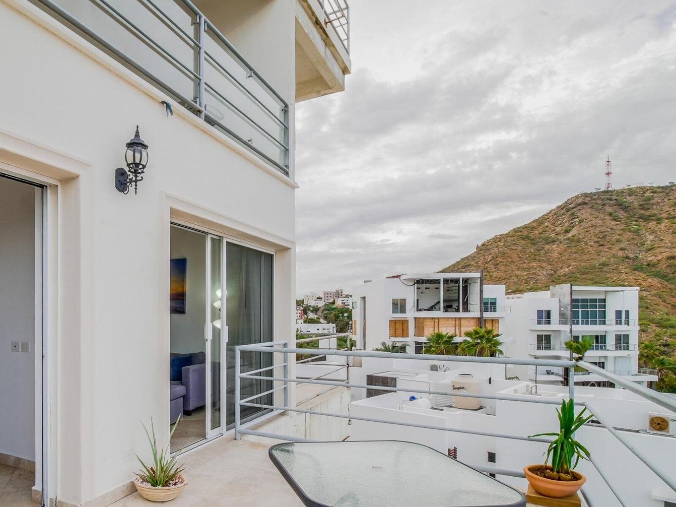Priced to sell fast!!! Oceanview two bedroom two bathroom condo at San Charbel Cabo San Lucas. The condo is located on the second floor of the complex southern building, giving great panoramic ocean and city views from both bedrooms and from the ample terrace. The condo has beautiful marble floors throughout the condo, wooden cabinets, closets and doors, AC mini splits and fans in each room. Primary bedroom with direct access to terrace, king size bed, tv, enclosed bathroom with closet and marble tiles finishes; the spacious living/kitchen area with access to terrace through sliding window doors, living with tv and couch, the L shape kitchen is equipped with granite countertops, marble splash tiles, 4 seat dine table, buffet with mirror plus, fridge, range, hood, microwave...