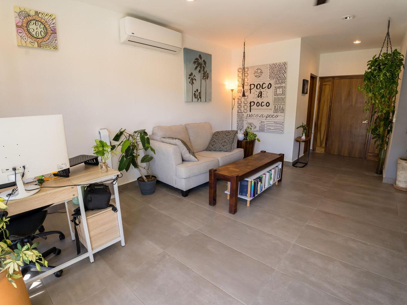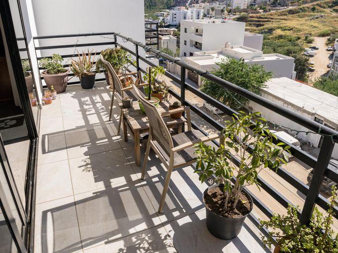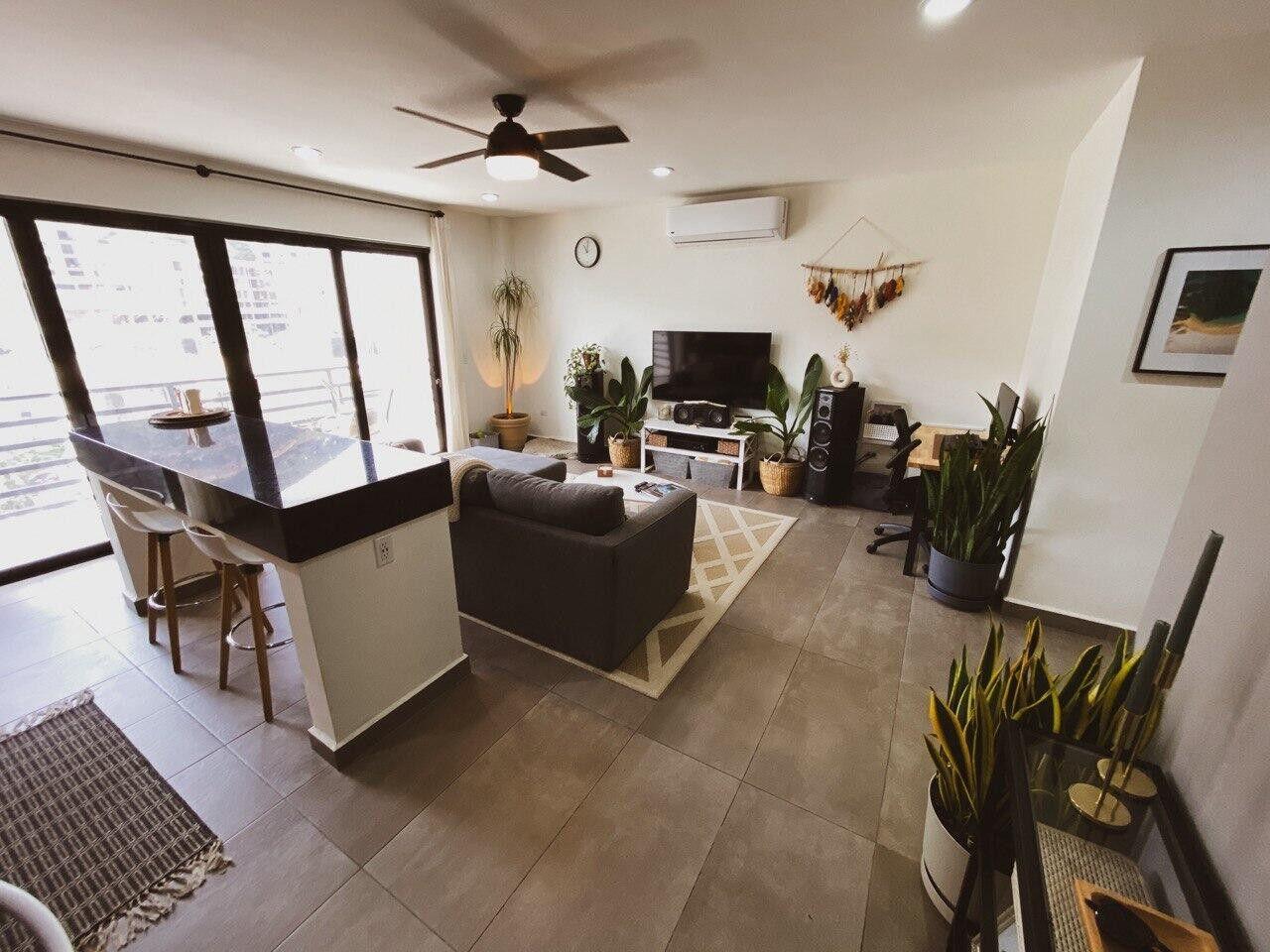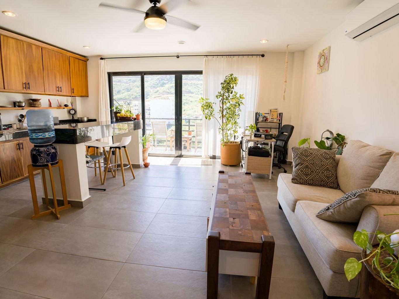 Spacious 1Br Turn Key Condo, just minutes walking to Downtown Cabo! Ready to move in, partly furnished with Sofa, Coffee Table, King Size bed, Side Tables. Top floor with beautiful Mountain views, an oversized Bedroom, and giant walk in closet! Just minutes walking to 100s of Bars & Restaurants. To Rent or Retire in there is no more competitive unit in the neighborhood!