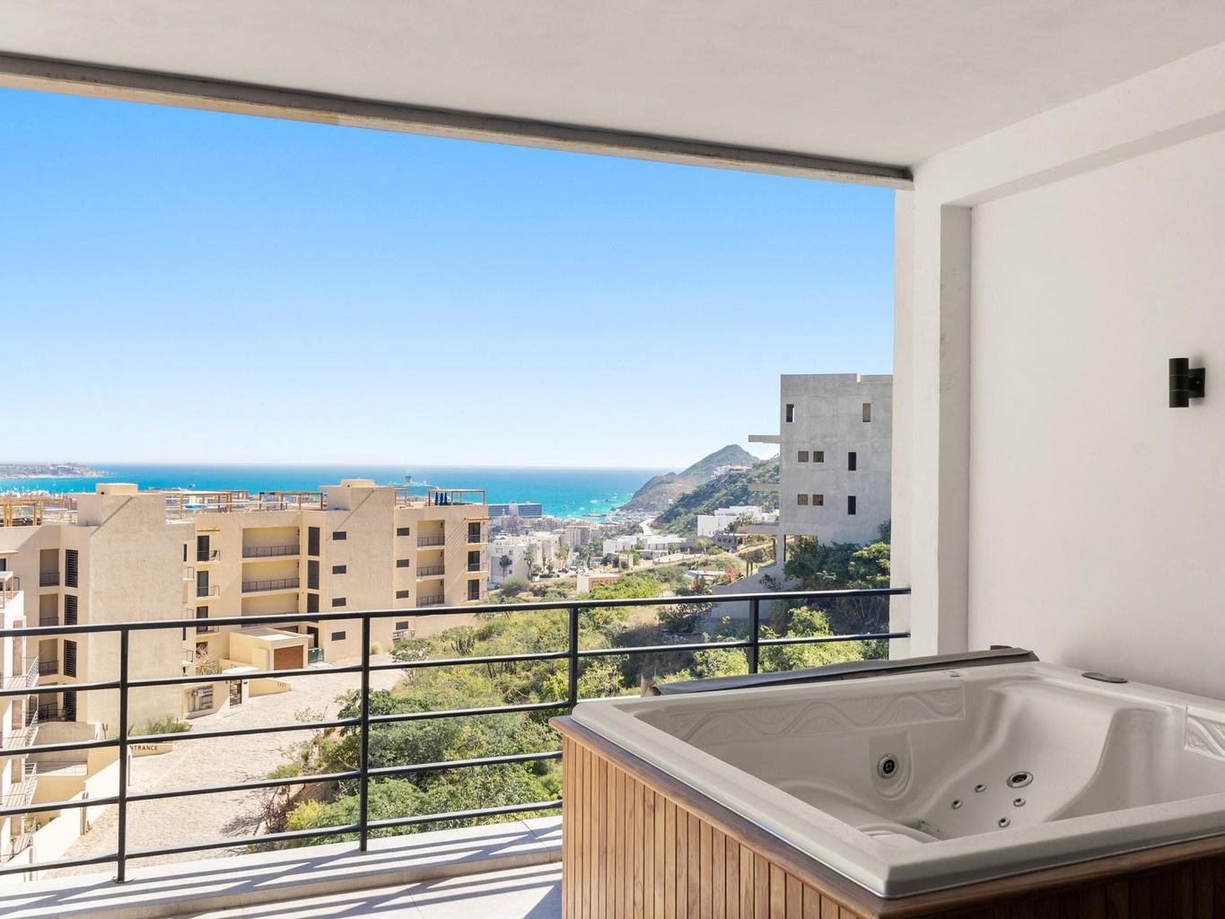 Live the Cabo dream in this exclusive corner condo located in the highly desirable Sunset area of Cabo San Lucas. Set within a boutique community of just 20 units, this property offers the perfect balance of privacy and comfort. Featuring 2 bedrooms and 2 bathrooms, spacious interiors, and a smart layout, the highlight is the private terrace with jacuzzi, the perfect spot to unwind while enjoying the breathtaking views of the ocean and the Cabo San Lucas Marina. Whether as a vacation home, rental investment, or your own coastal retreat, this condo is a rare find that blends location, exclusivity, and lifestyle.