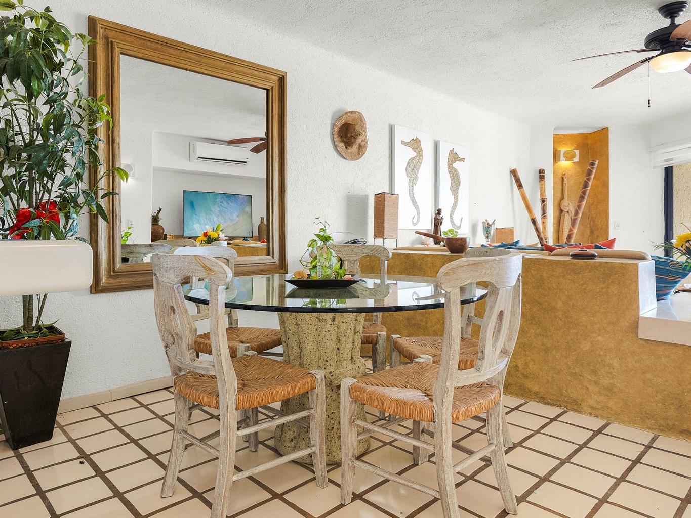 Designed with authentic Mexican charm, the condo features two generous master suites with king beds that open directly onto the decks. The inviting living area includes a comfortable L-shaped sofa, while outside you'll find ample loungers and a dedicated BBQ area perfect for relaxing or entertaining.