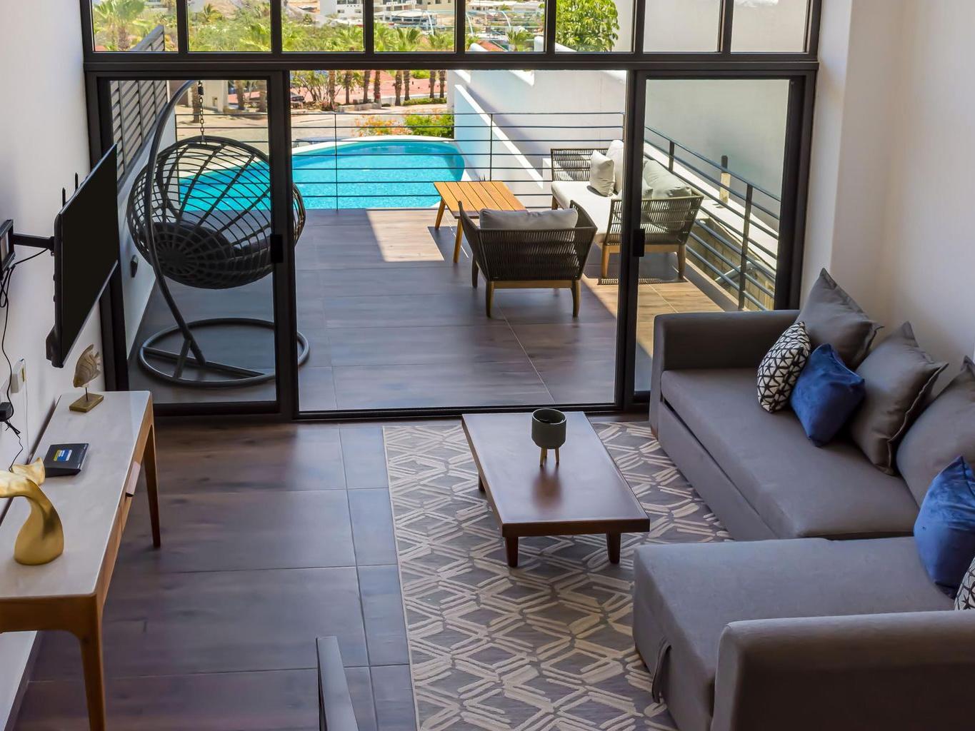 Discover unparalleled elegance in this sophisticated 2-bedroom, 2.5-bathroom corner condo, perfectly situated in the prestigious Pedregal community. Designed for refined living, this exquisite residence offers a seamless blend of modern comfort and timeless luxury.