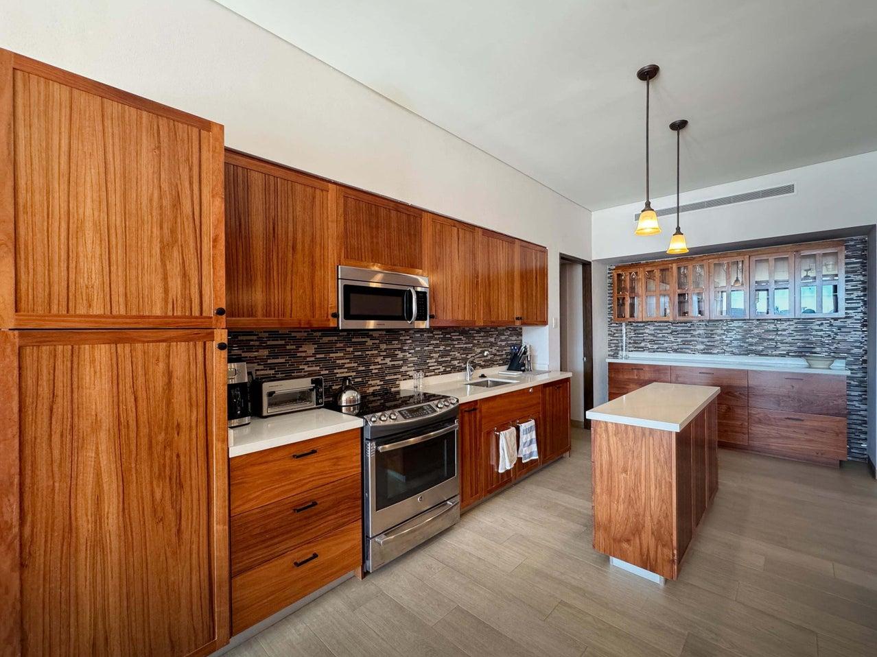 Experience upscale coastal living at The Paraiso Residences, located within the exclusive Puerto Paraiso Mall—the heart of Cabo San Lucas. This 3-bedroom, 3-bathroom Penthouse offers the perfect blend of comfort, sophistication, and convenience, all on a single-level open floor plan designed for effortless living. Step onto the wrap-around balcony and take in breathtaking views of the Cabo Marina, complete with an outdoor dining area and built-in BBQ station, ideal for entertaining or relaxing under the Baja sun. Inside, the thoughtfully designed layout ensures a seamless flow between the living, dining, and kitchen areas, creating an inviting space for both everyday living and hosting guests. Each bedroom features its own full en-suite bathroom, providing privacy and comfort for all.
