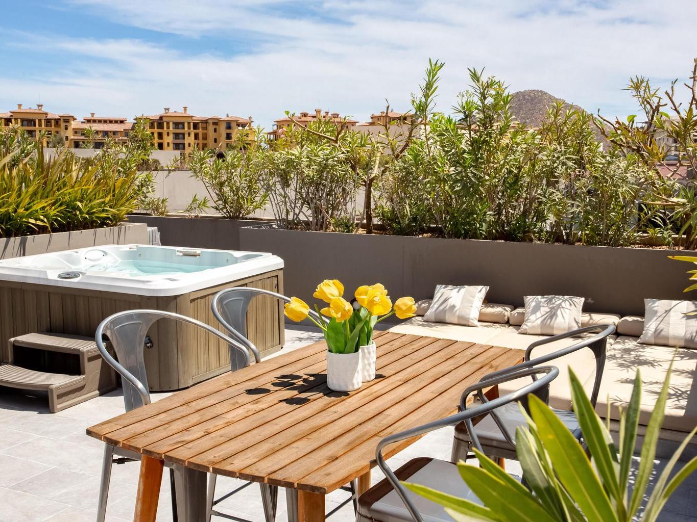 uxury condo attached to the famous Avenue shopping mall with 3 private patios in the heart of the Cabo San Lucas marina district. Live your best life with easy access to shopping, dining and beach life. The residence is equipped with everything you need turn key ready.