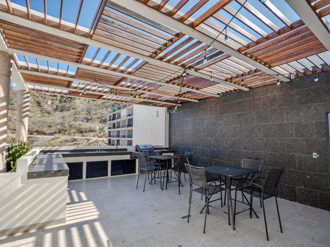 Speaking of the rooftop, it's the ultimate hangout spot. You get an infinity-edge pool, a chill BBQ area, and views of the Cabo skyline that will make your Instagram followers very jealous.