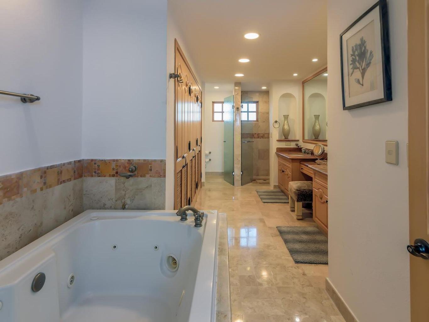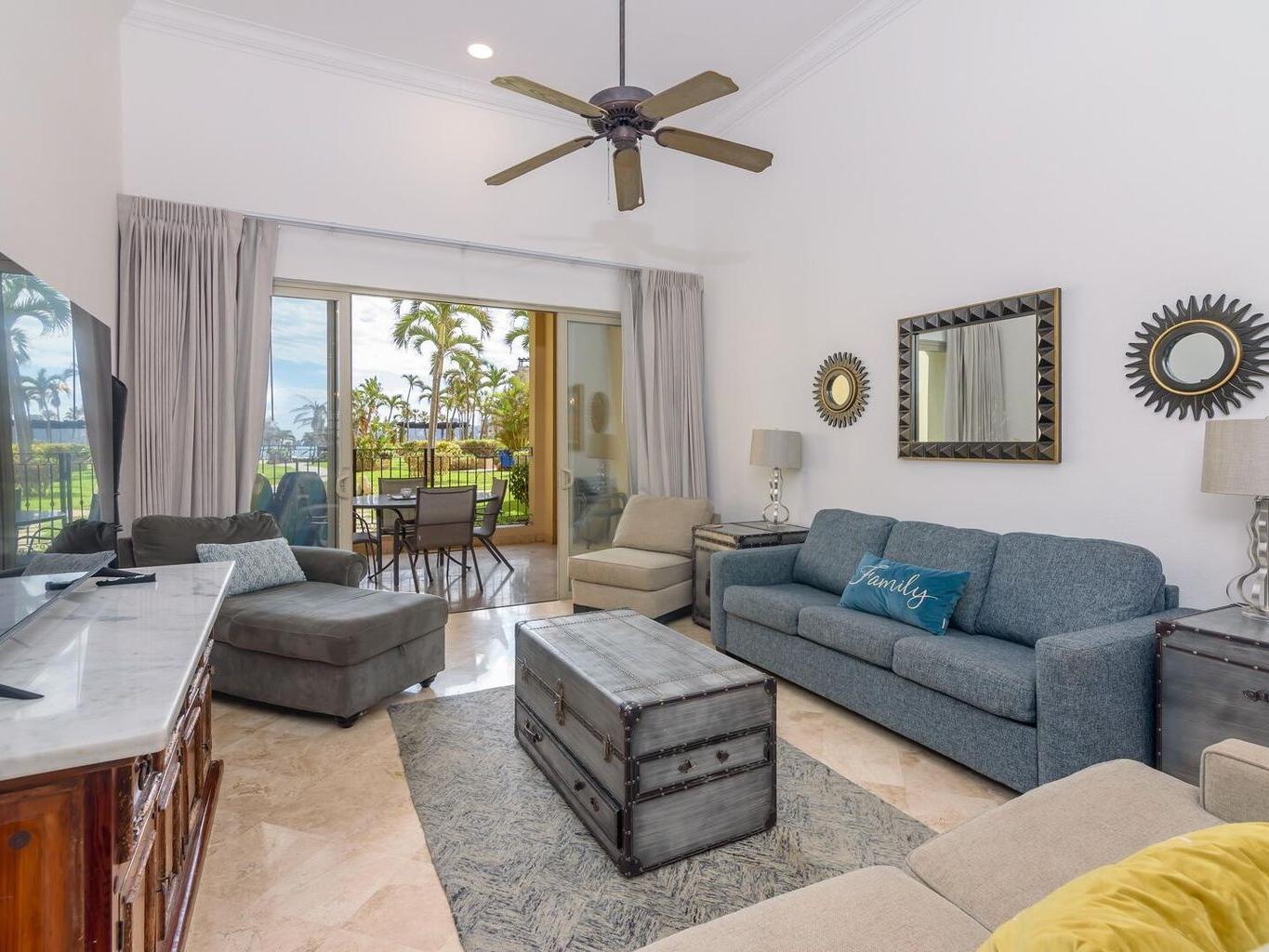 This coveted ground floor villa is steps from the sparkling Sea of Cortez and Medano beach. Located within Villa L a Estancia, a renowned high end private residence which offers resort style amenities.
