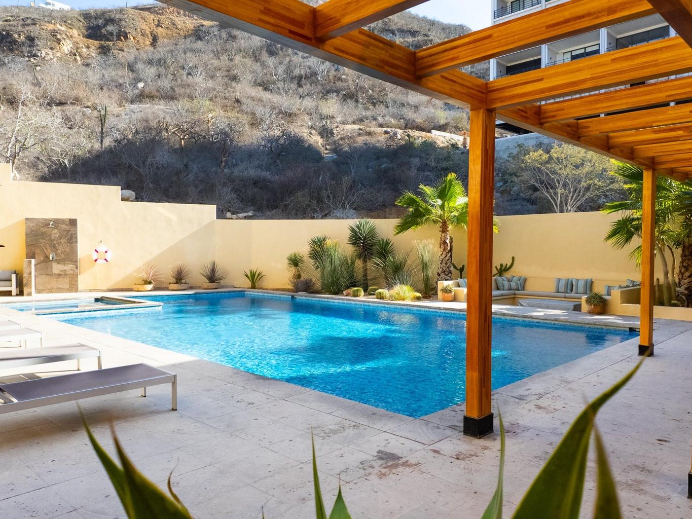 Residence at Vista Mare, Cabo San Lucas, located on the 4th floor and designed for an elevated Los Cabos lifestyle. Featuring 3 bedrooms, 2 bathrooms, and 2 covered parking spaces, this home showcases modern finishes and a bright, open layout. The spacious terrace offers stunning mountain and ocean views--perfect for relaxing or entertaining. Enjoy resort-style amenities including a fitness center, two swimming pools, jacuzzi, and social areas with firepit. Located within a private community just minutes from downtown and the marina, this residence blends comfort, style, and strong investment potential.