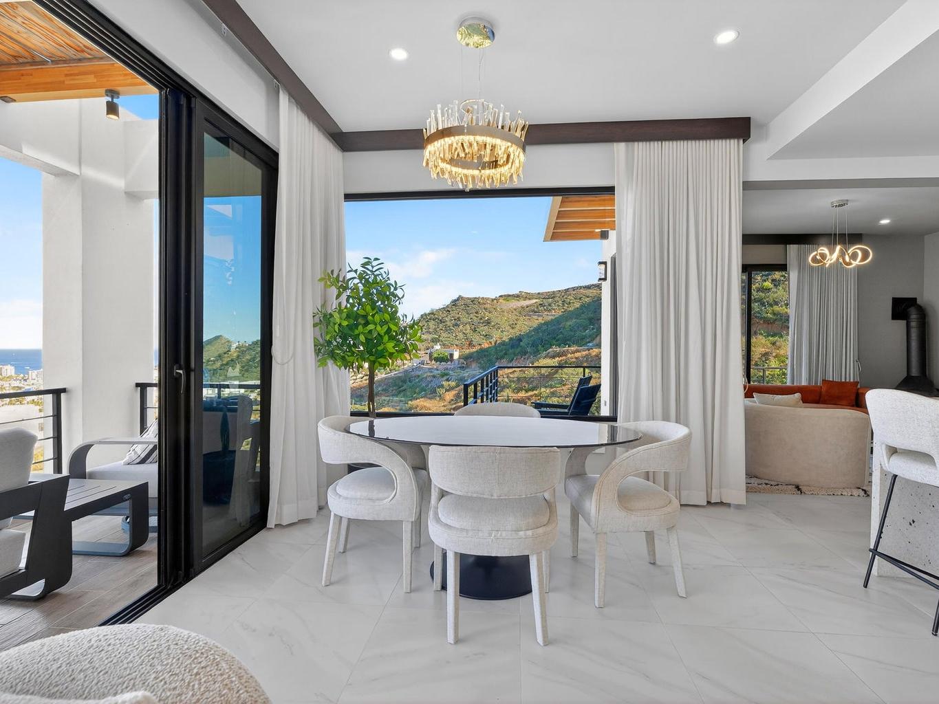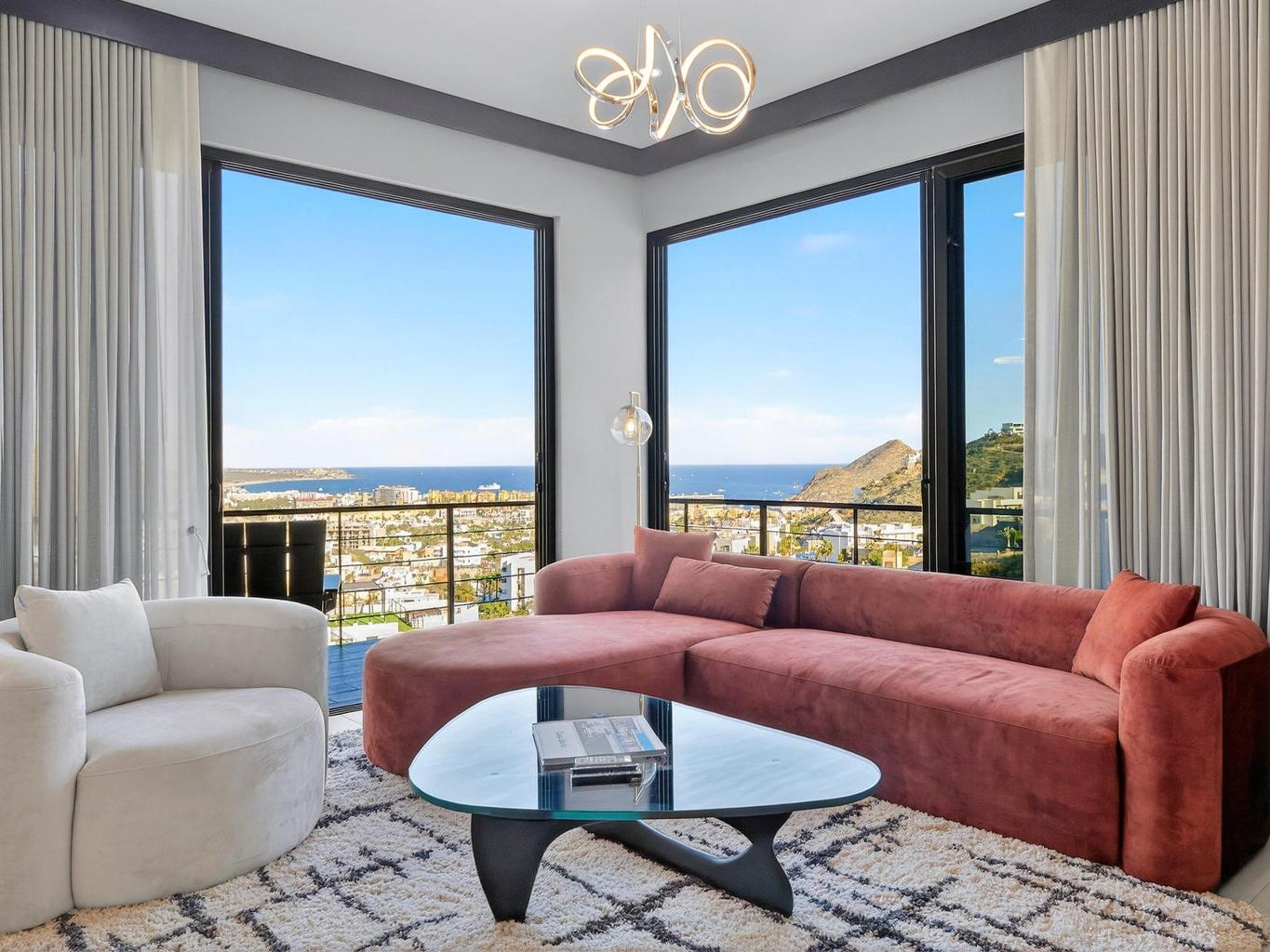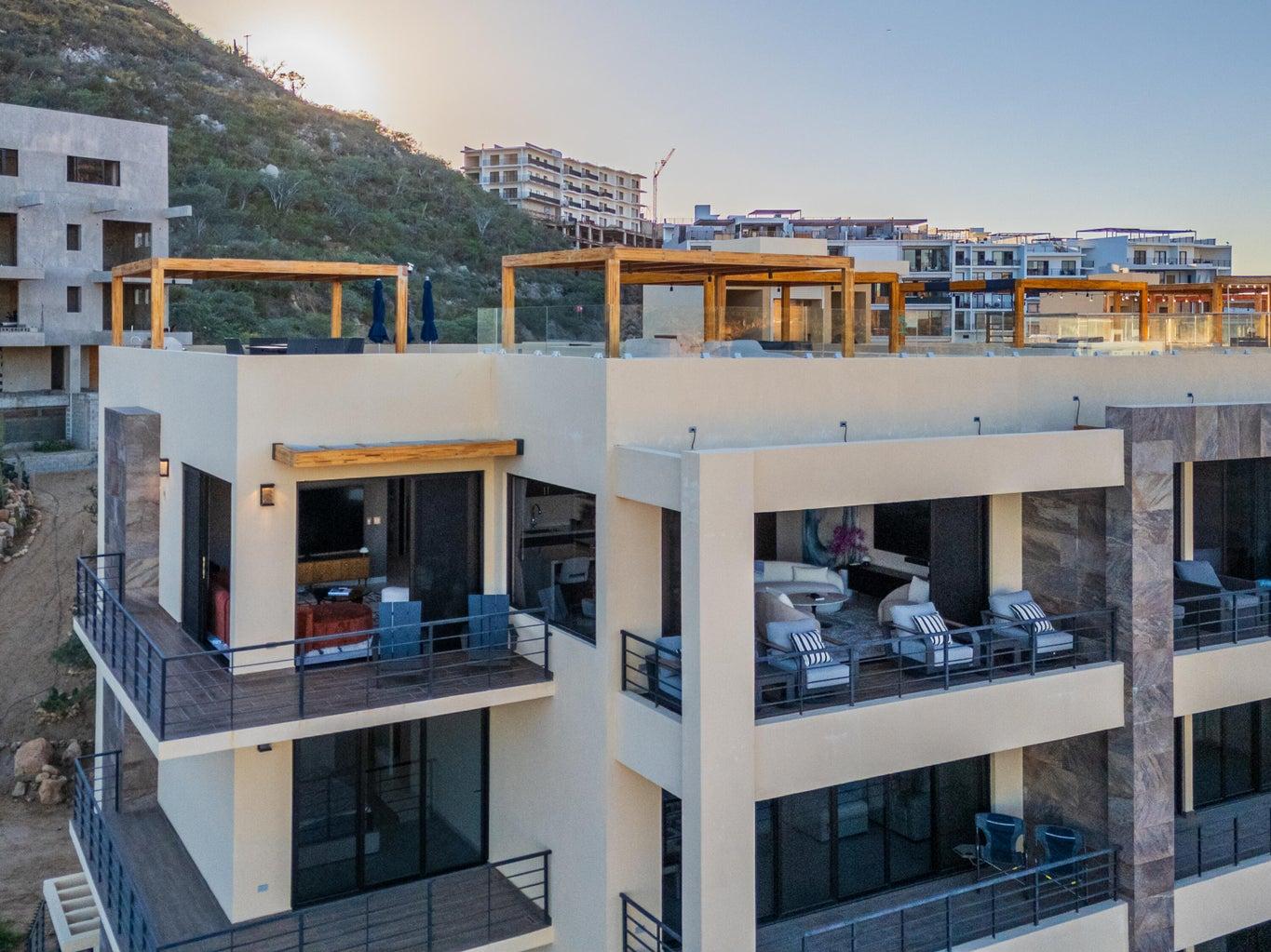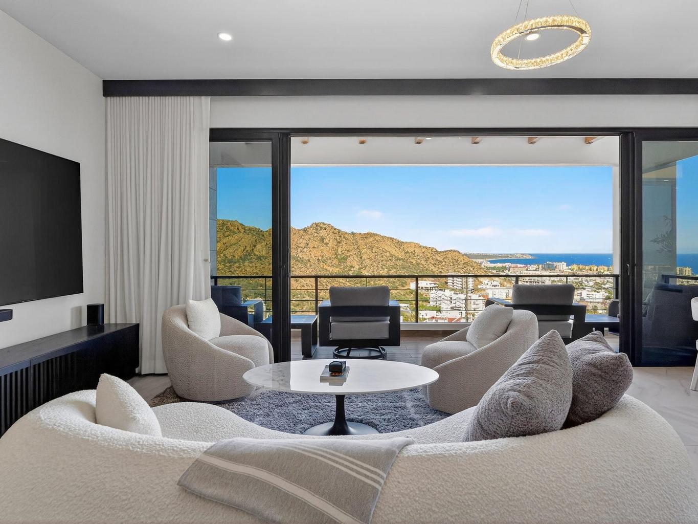 Exceptional corner penthouse in Vista Mare offering protected, unobstructable ''forever views'' over Medano Bay, the marina, cruise ships, city lights, and surrounding mountains. Located in the highly desirable Sunset Corridor just outside Pedregal, this residence combines panoramic views with rare walkability -- approximately 10 minutes to downtown Cabo and the marina with no major highways to cross.