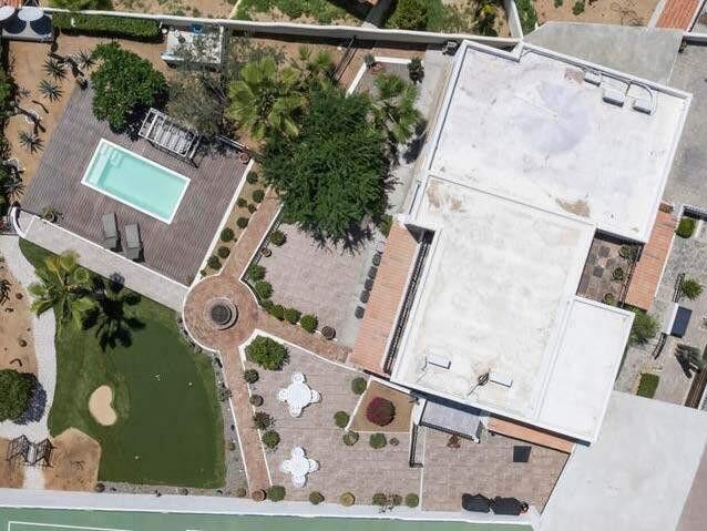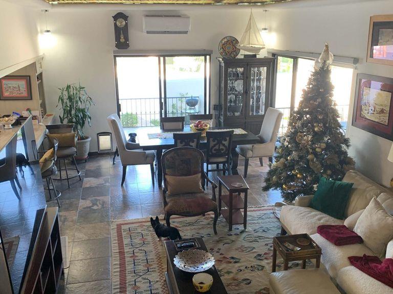 The home's artisan-style brick dome ceiling is a captivating architectural feature, adding warmth, texture, and a touch of timeless elegance to the main living space.