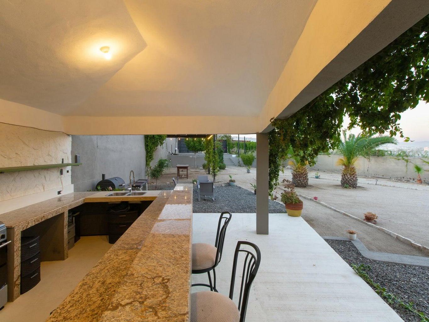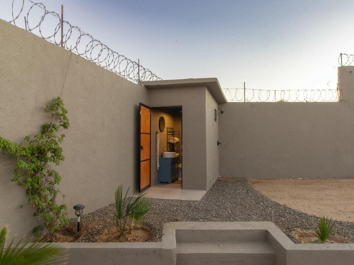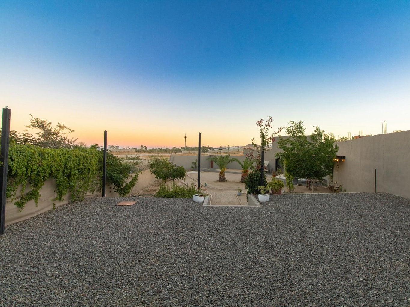 This fully gated property offers privacy and security, featuring a complete kitchen, bathroom, and pergola, making it ideal for comfortable living while you build a house. It includes a garage, efficient irrigation system, and a variety of fruit trees. A 25,000-liter water cistern ensures reliable water storage. Conveniently located just minutes from shopping and dining plazas, with quick access to the highway to La Paz and San José, this lot combines tranquility, practicality, and excellent potential for residential or commercial development.
