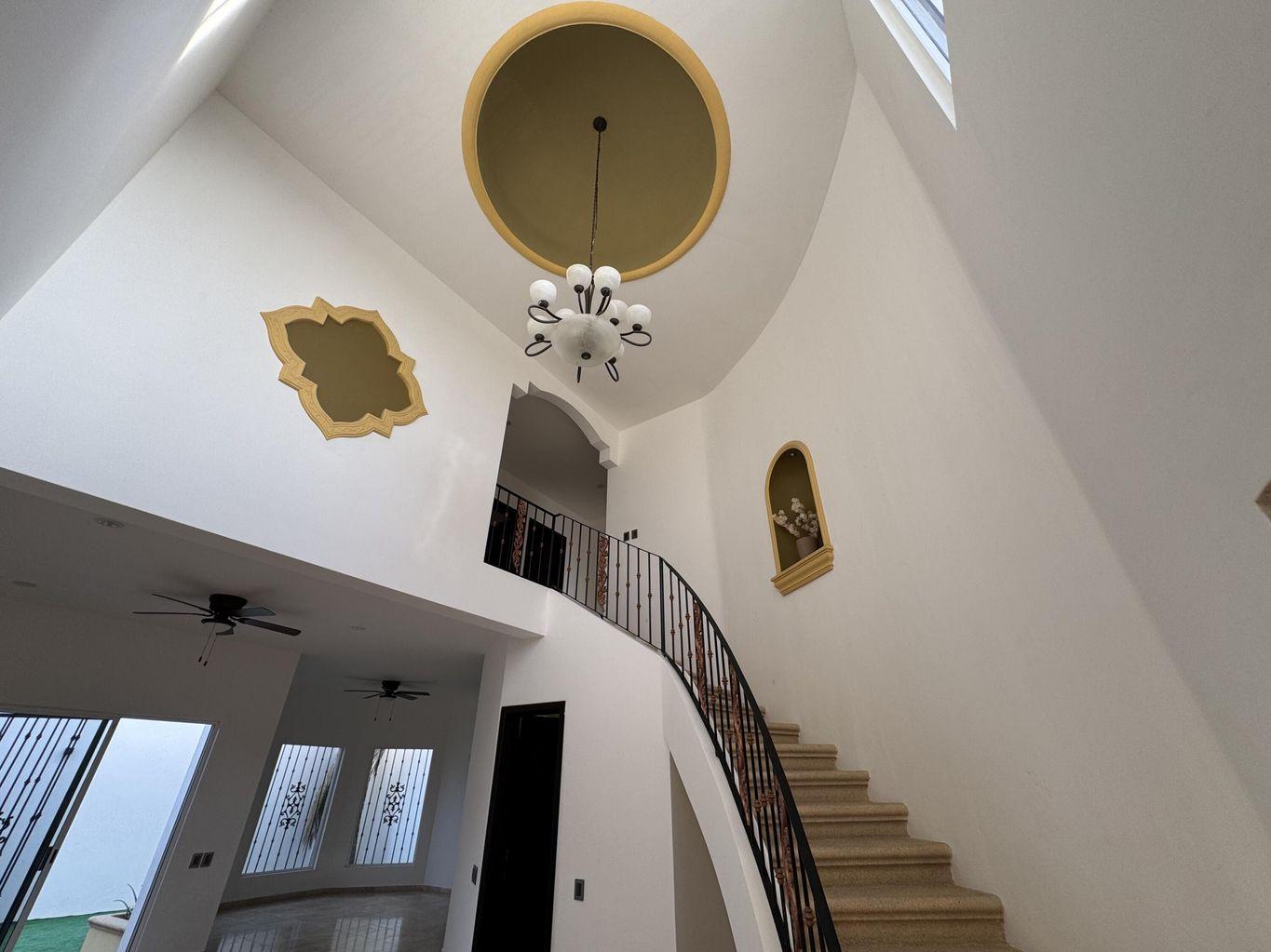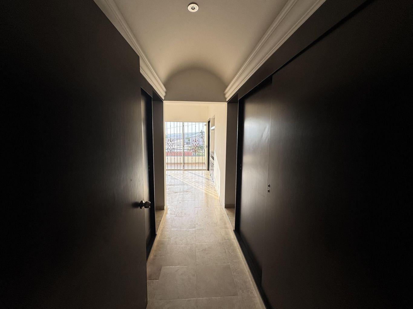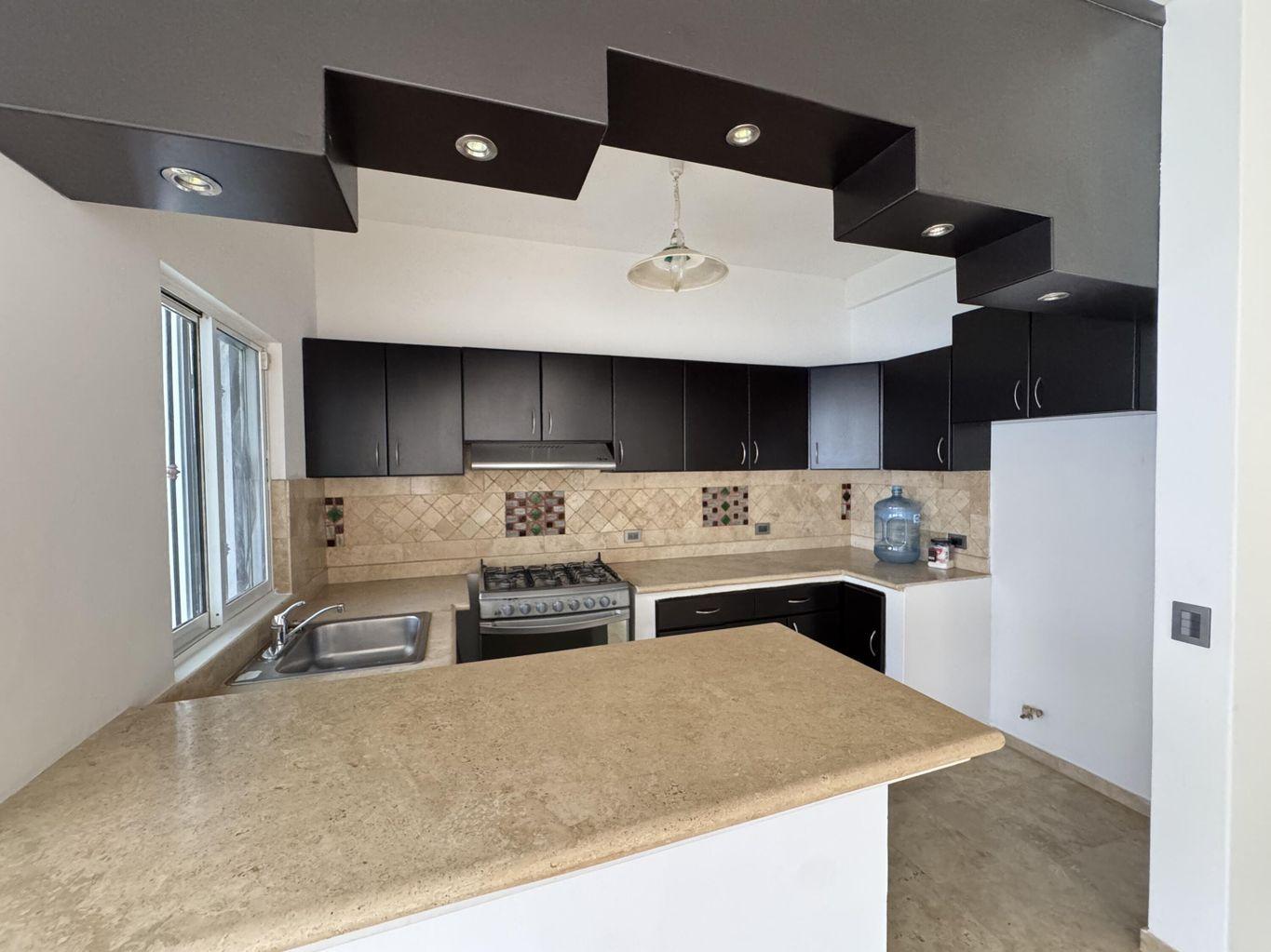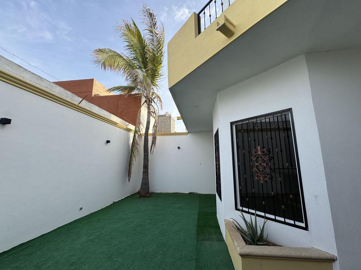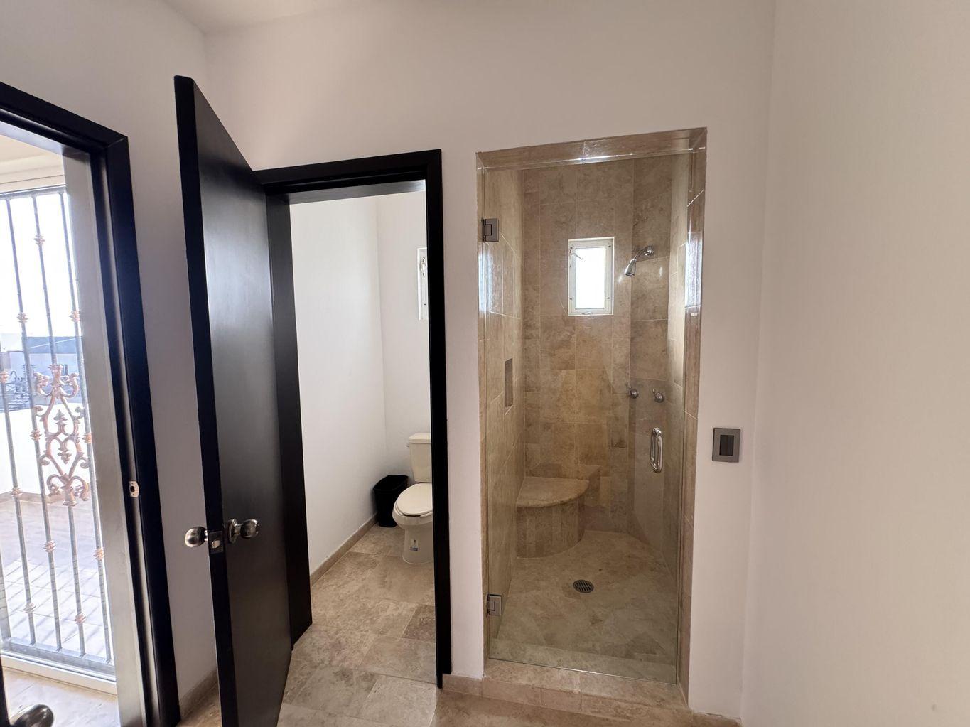 La recámara principal ofrece baño completo con tina tipo jacuzzi. Acabados en mármol, carpintería en tono oscuro y excelente iluminación natural. Patio amplio ideal para reuniones y cochera con portón eléctrico.