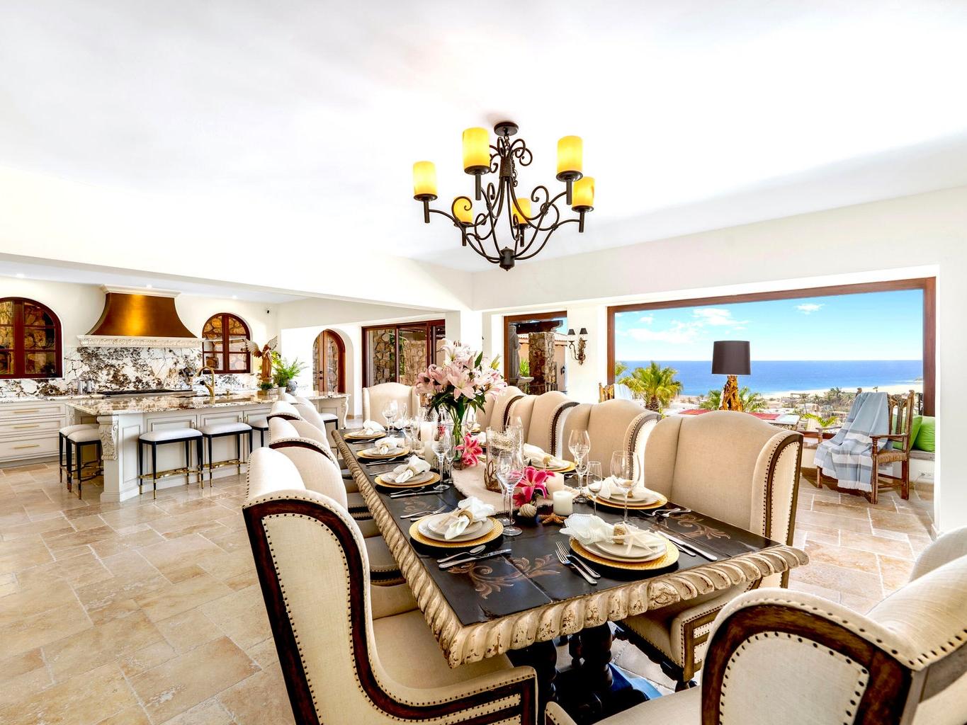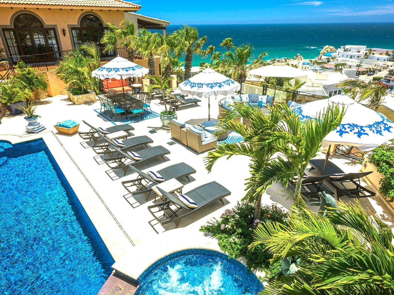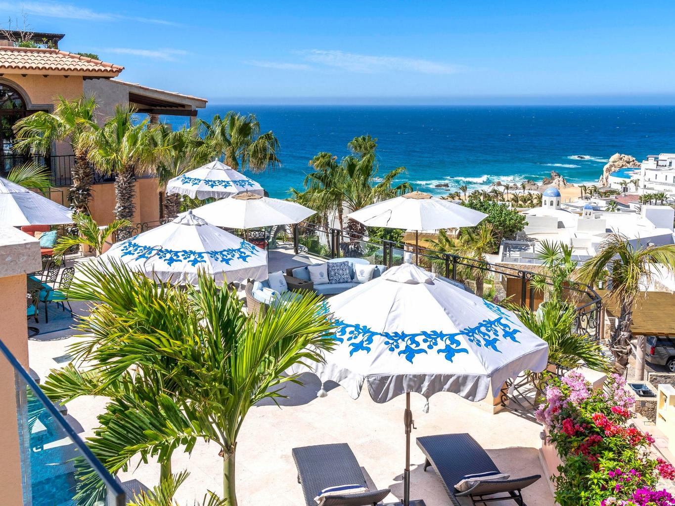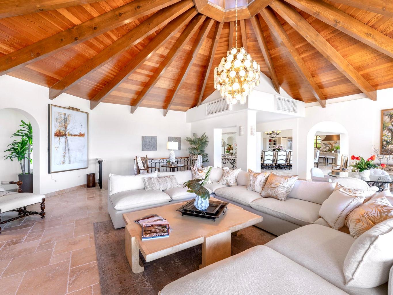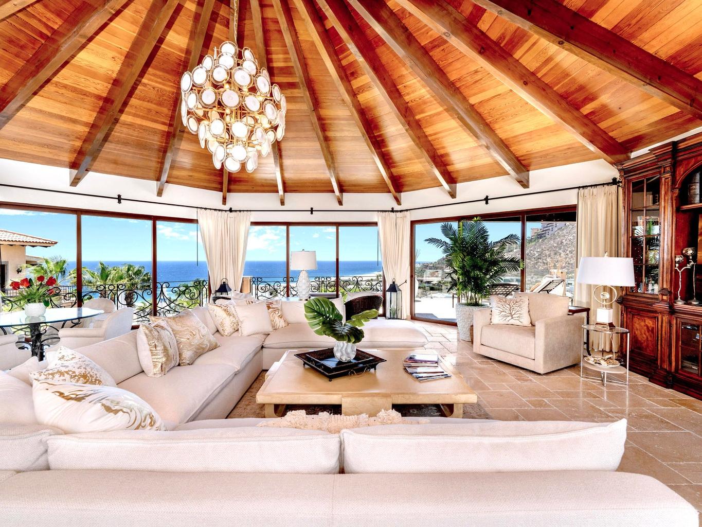 Experience the epitome of luxury living with this unique, extraordinary nine-bedroom home with 11 full size bathrooms boasting the soothing sounds of the ocean and breathtaking sunset views. Indulge in culinary delights with multiple chef's kitchens and elegant fine dining terraces. Relax in the two pools and jacuzzi or unwind in the serene massage room. Host in style in the spacious entertainment room complete with a bar. Admire the meticulous craftsmanship of the wooden ceiling in the main living room, offering captivating ocean vistas. Additional amenities include a wine cellar, three fountains, an outdoor grill and lush garden surroundings. Excellent INVESTMENT property for corporate retreats and weddings.
