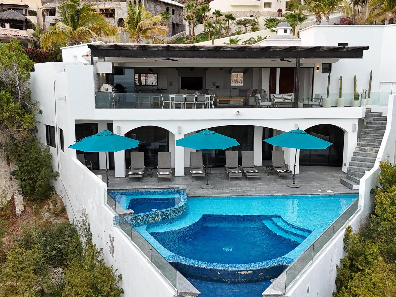 INCREDIBLE VALUE. PRICED TO SELL. TURN-KEY. OCEAN VIEWS. NEWLY RENOVATED. OWNER FINANCE CONSIDERED. Located in the hills of Pedregal, Casa Nido del Mar is the epitome of indoor-outdoor living. Thanks to Cabo's near-perfect weather year-round, this villa seamlessly blends open-concept luxury with the natural beauty of the Pacific Ocean—visible from nearly every corner of the home. Set within a gated community known for itsproximity to the marina and world-class dining, Top choice for families, corporate retreats, and groups of friends alike. The villa features four spacious bedrooms and four elegant bathrooms, comfortably accommodating up to eight guests.