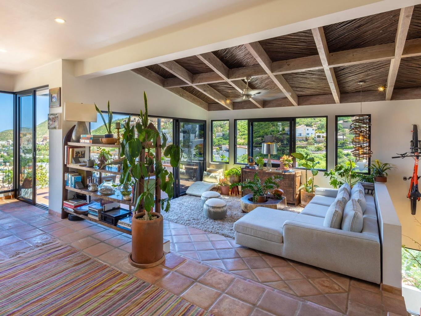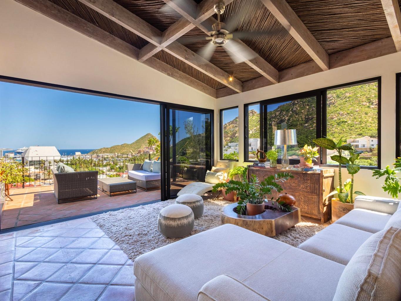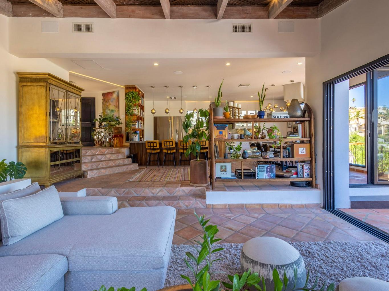 Created for intimate entertaining, the open concept plan boasts a professional grade chef's kitchen which effortlessly flows to the family sized dining space and then steps down to the sunken living room, all offering panoramic views of downtown Cabo and the Sea of Cortez.
