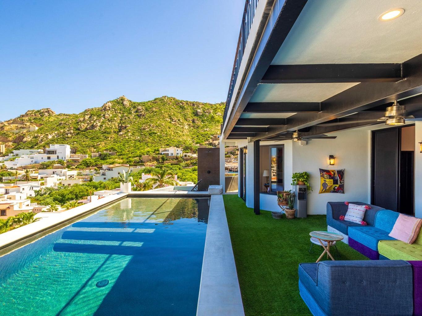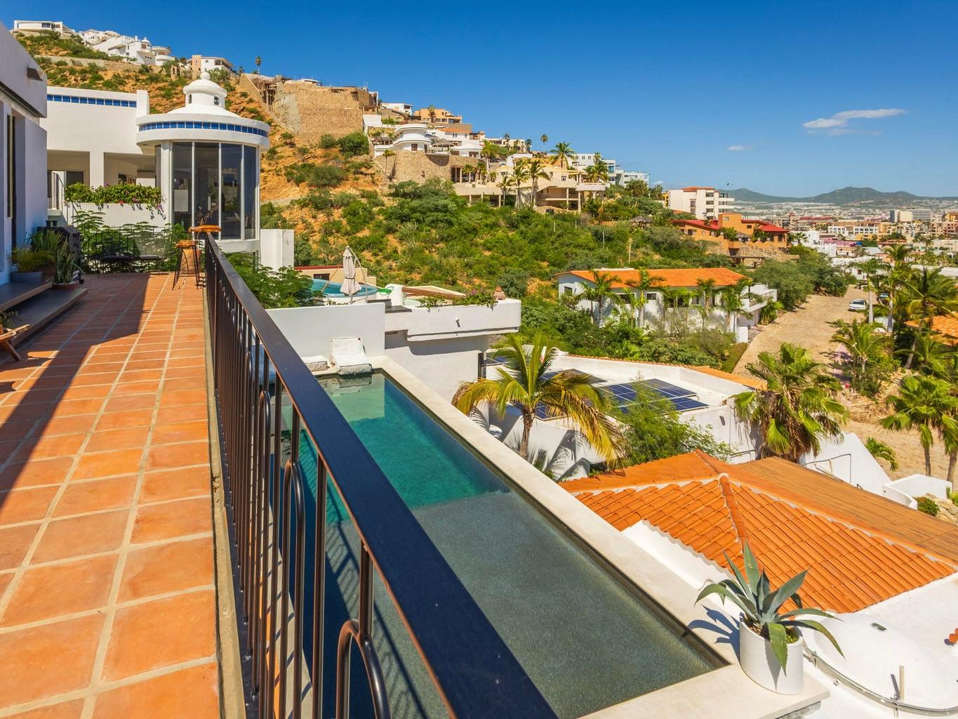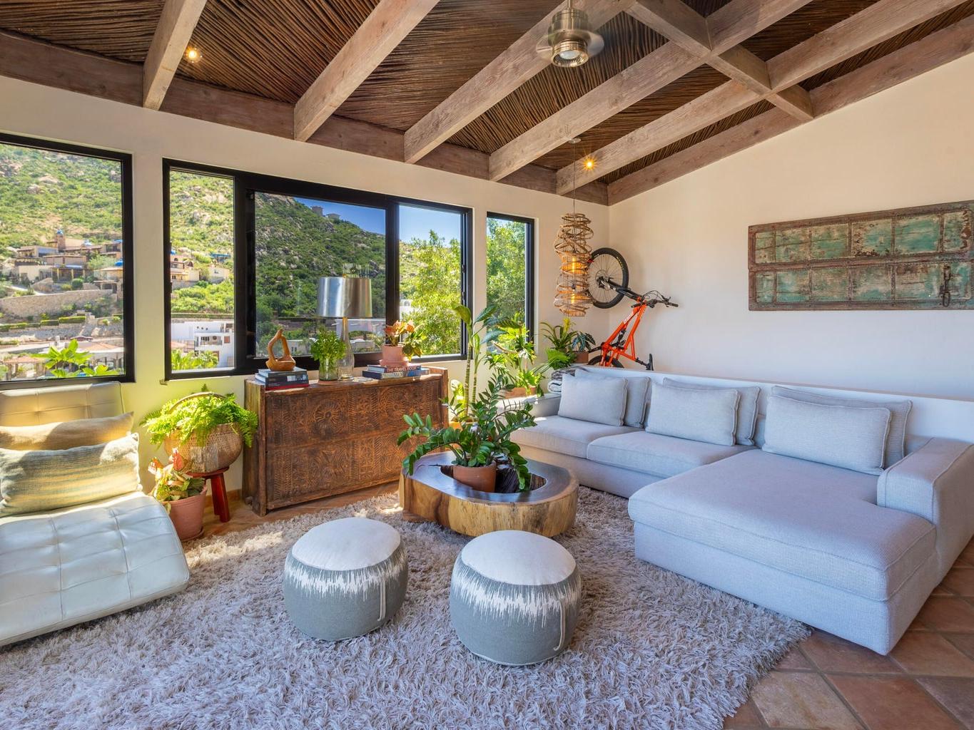 Created for intimate entertaining, the open concept plan boasts a professional grade chef's kitchen which effortlessly flows to the family sized dining space and then steps down to the sunken living room, all offering panoramic views of downtown Cabo and the Sea of Cortez.