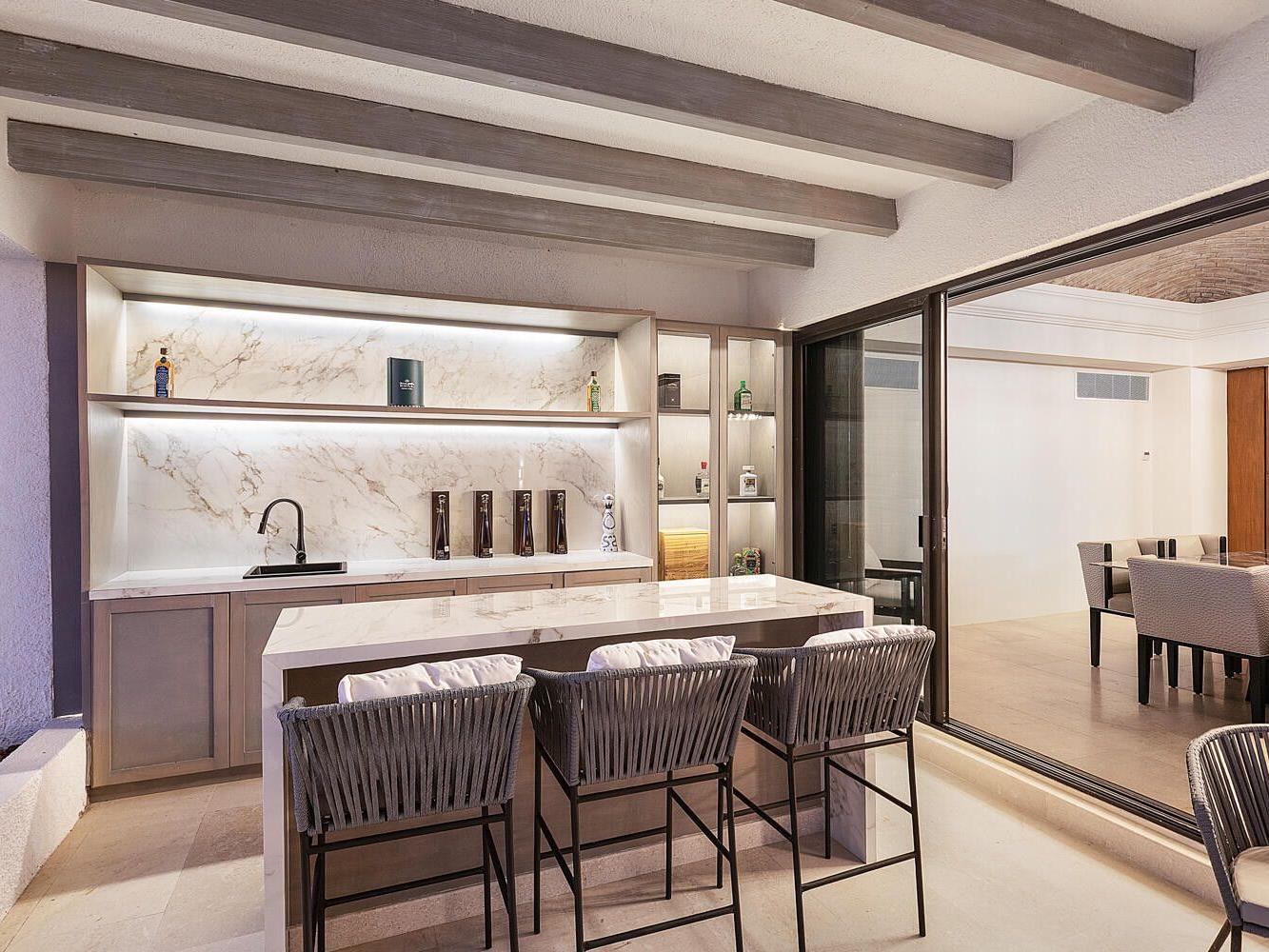 Completely reimagined with refined, modern finishes, this residence blends clean design with natural textures and panoramic views from every room. Floor-to-ceiling glass walls open the living spaces to the sea, while six serene bedrooms, five facing the ocean, provide the perfect balance of comfort and elegance.