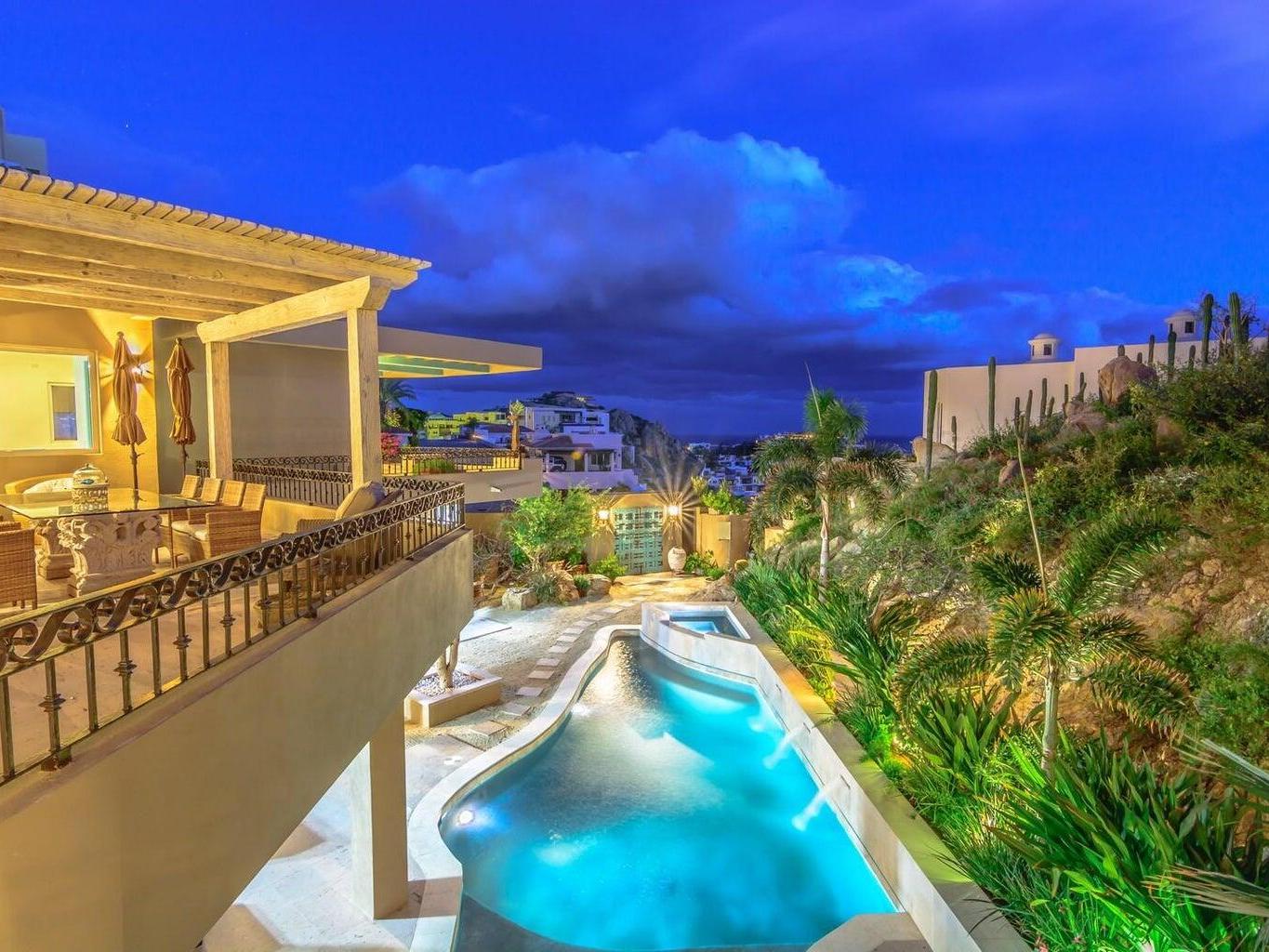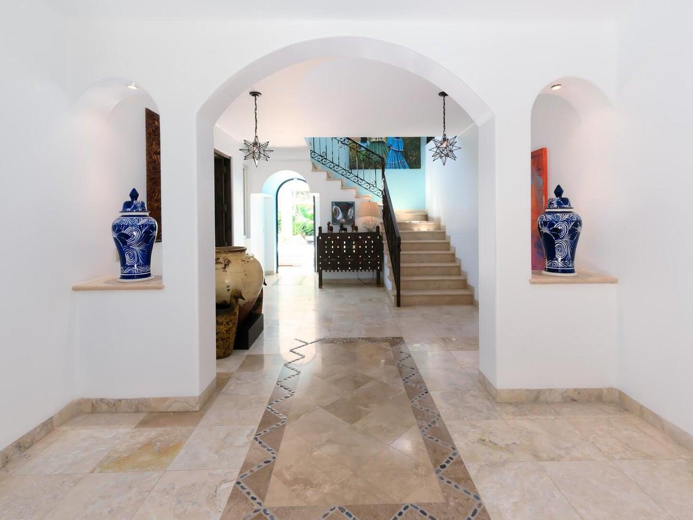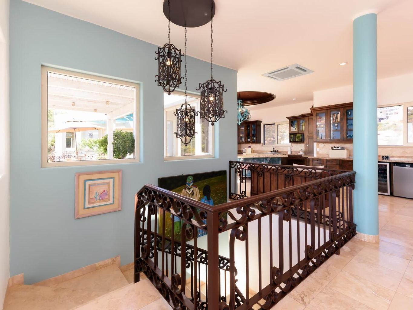 This residence offers exceptional amenities, including a pool with a jacuzzi, two separate entrances, and four bedrooms that each feature lock-out closets. The home is designed for luxury and convenience, featuring large showers, a chef's kitchen with granite countertops and GE Monogram appliances, a dedicated dumb-waiter for groceries, a generator, and storm shutters. The large aqua granite island in the kitchen is ideal for entertaining in style. Every room provides stunning views of either the ocean or the poolside landscaping and surrounding hill. The outdoor terrace is equipped with a glass and cantera dining table, sourced from Guadalajara, Mexico, that comfortably seats ten. An excellent cross breeze further enhances the living experience in this home. Turn key!
