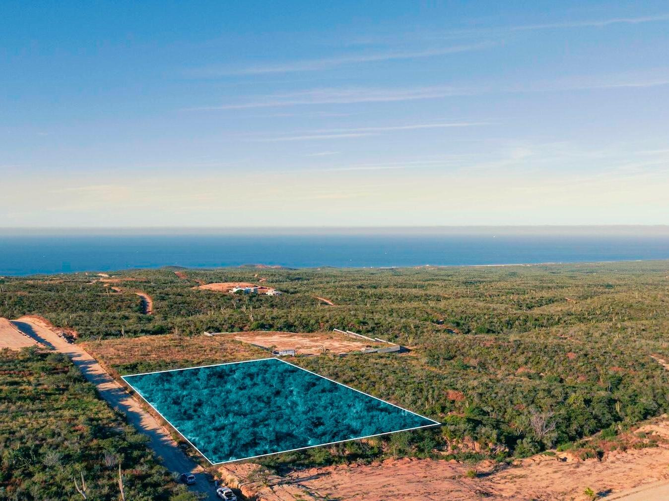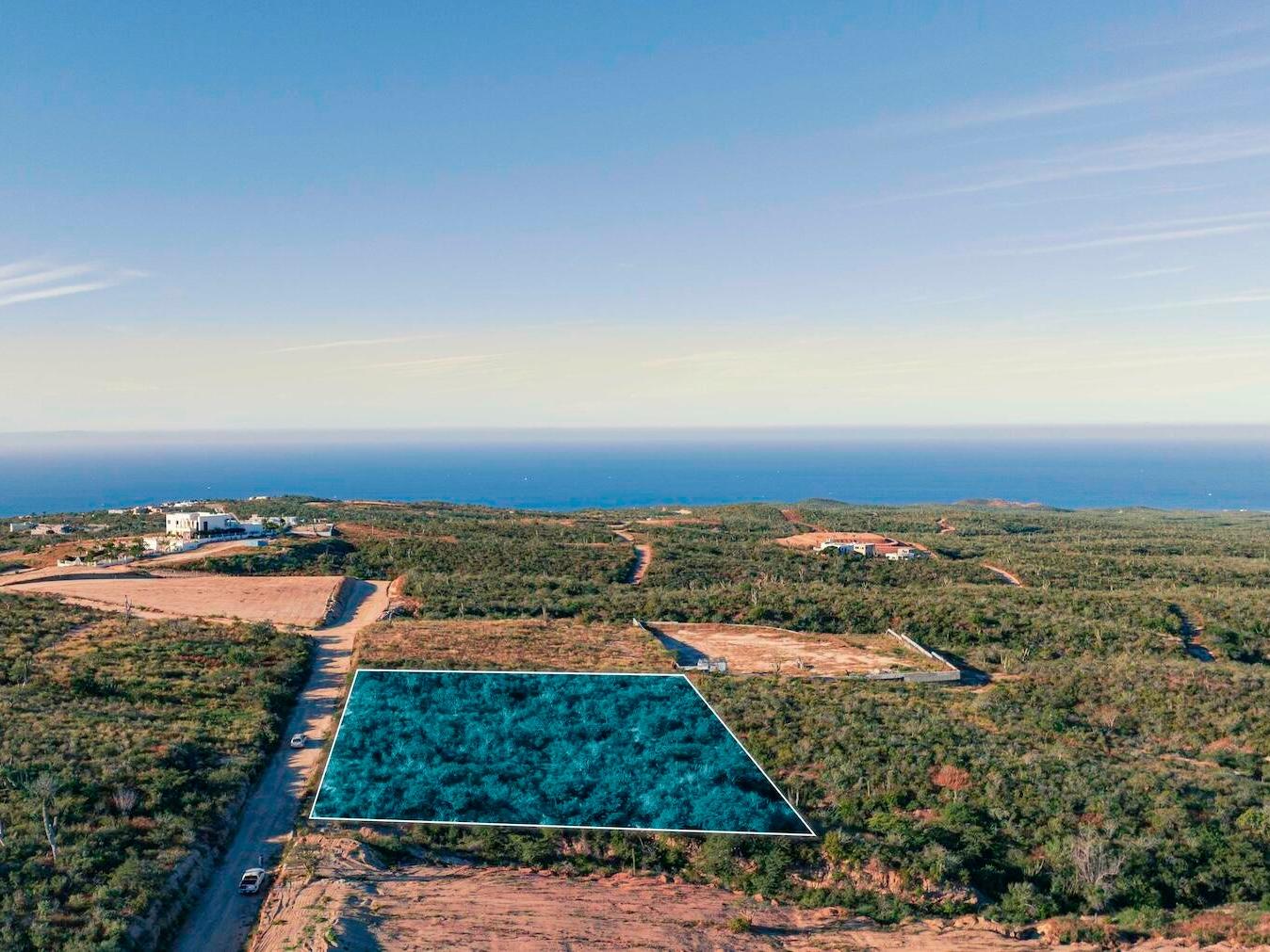 Residential corner lot located in Colinas del Cabo, adjacent to Rolling Hills Estates, with access via Rolling Hills. The property features a gentle slope in an elevated hilltop setting with a total area of 4,530 m² (approx. 48,760 sq. ft.), providing exceptional flexibility for residential development.