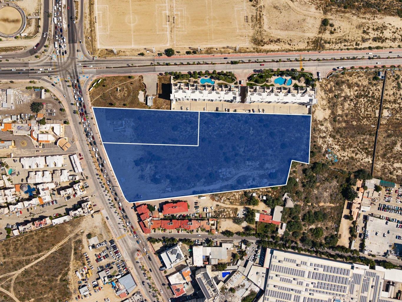 An irreplaceable 27,868.66 m² flat parcel at the true gateway to Cabo San Lucas. One block from Medano Beach and at the entrance of Downtown's main artery, this MI-zoned (Mixed Intense) property allows the highest density permitted in Los Cabos (6 levels; 78,000+ m² buildable). Walkable to the Marina, hotels, retail and nightlife, it offers unmatched absorption potential for a vertical mixed-use project. Priced to sell at $1,050 USD/m², this is a rare core asset with controlled downside and exceptional upside in Cabo's most strategic location.