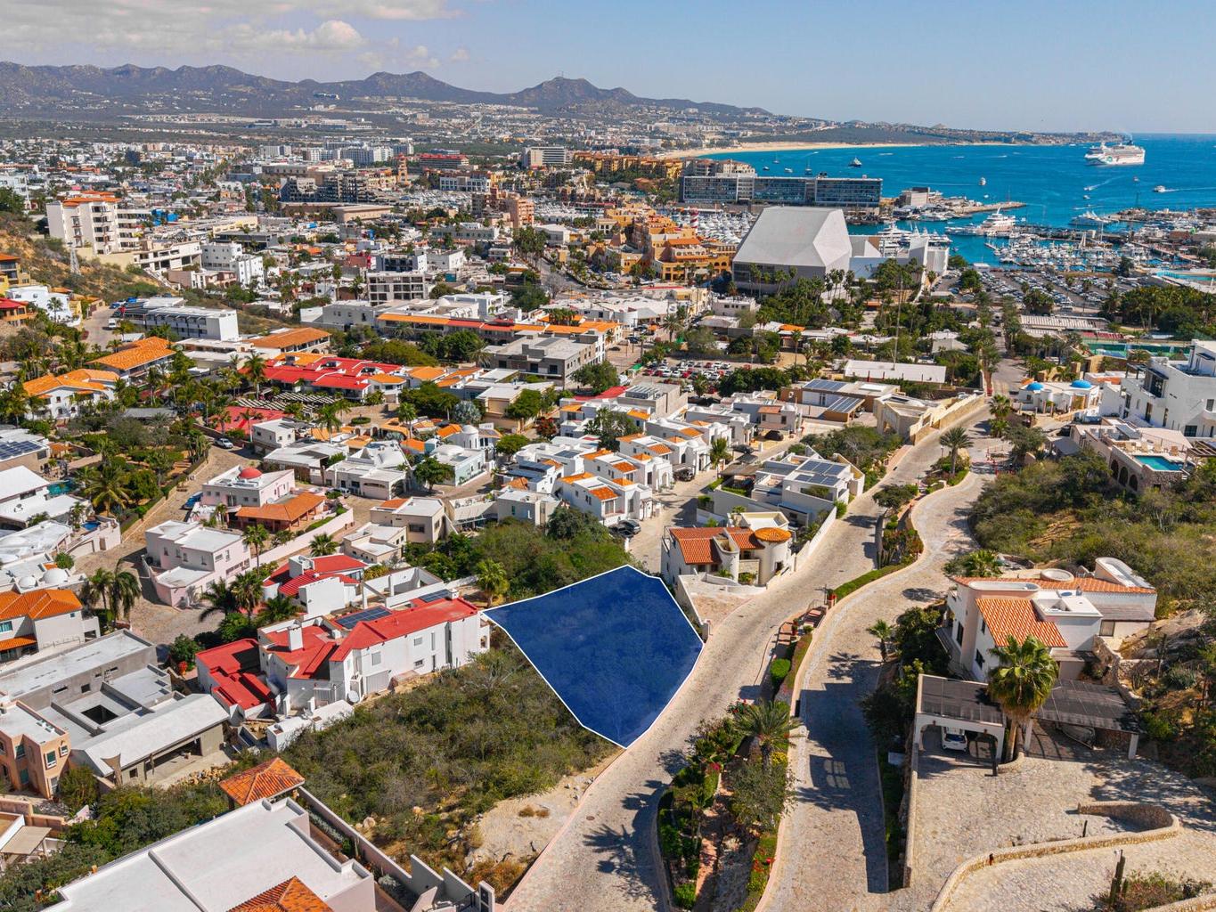 Exceptional opportunity in Pedregal Cabo San Lucas, one of Cabo's most prestigious communities. Priced at just $318 USD per m², this 1,082 m² (0.27 acres) lot represents one of the lowest entry points into this high-demand enclave. Ideally located near the Marina-side main access, it's a short walk to the Marina, downtown, restaurants, and vibrant nightlife. With strong short-term rental potential and build costs averaging $300-$350 USD per sqft, the upside is clear. Neighboring Casa La Piñata is listed at $4.7M on a smaller 800.39 m² lot—this parcel offers superior views and the potential to build even larger.