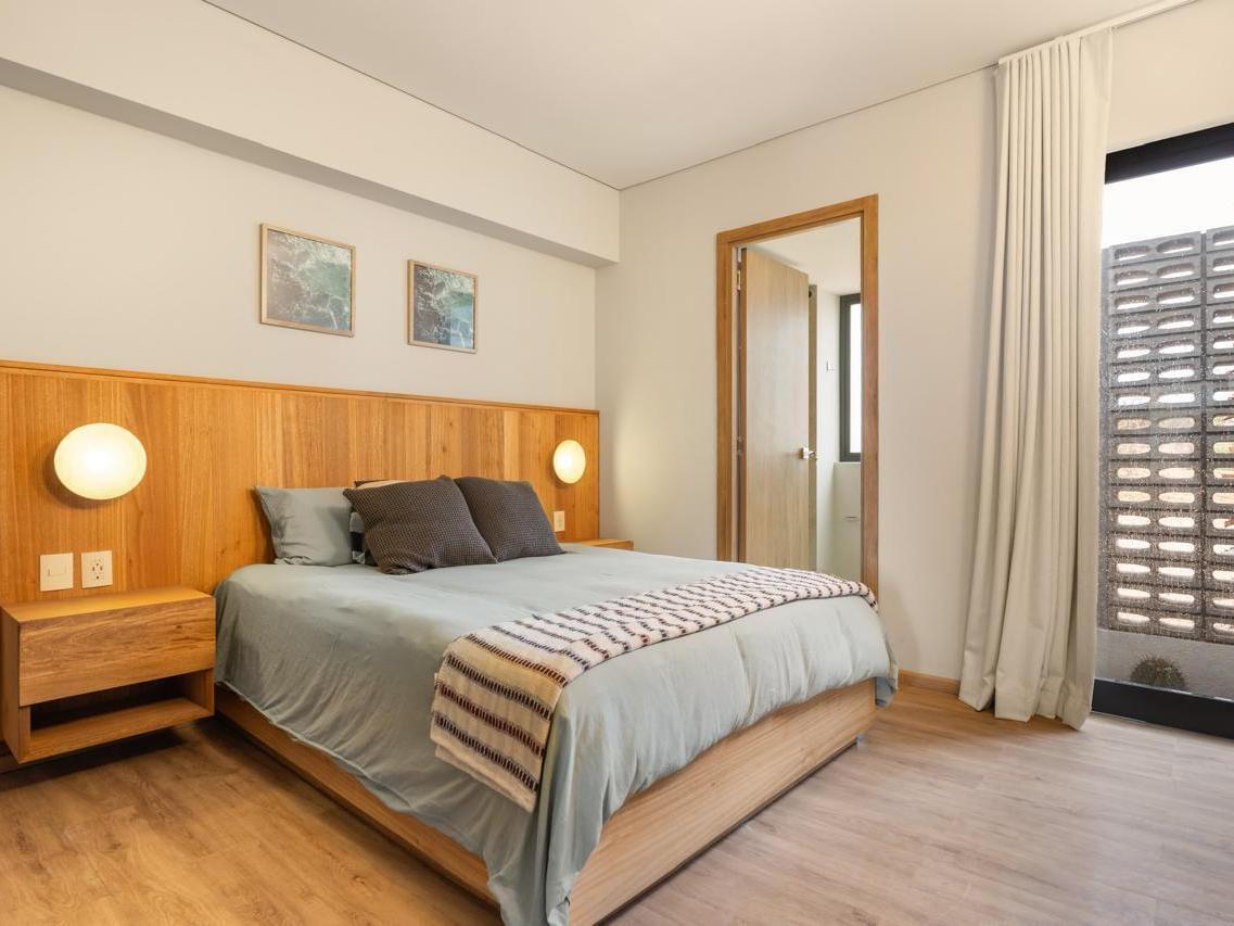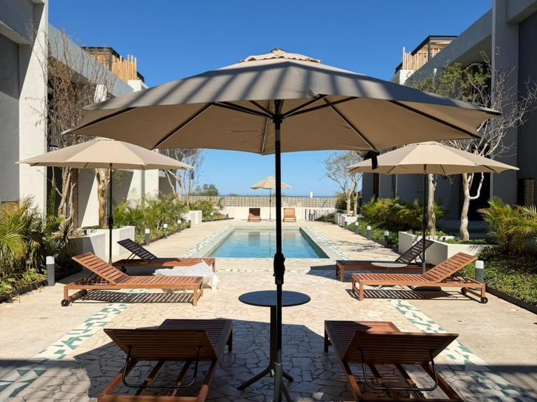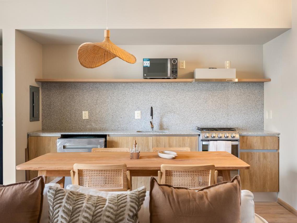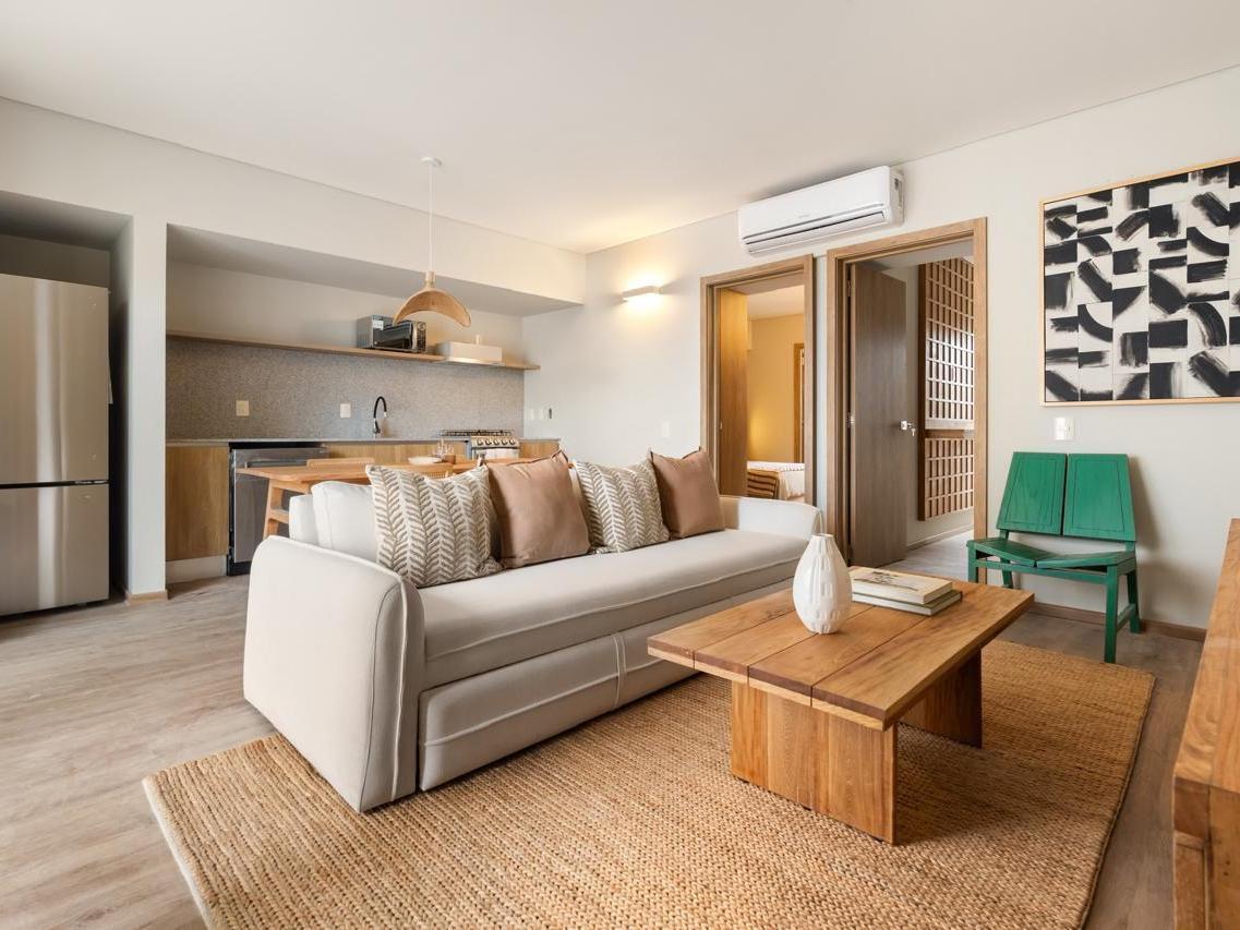 The residences offer an open concept layout that fuses contemporary architecture with warm, natural finishes. The living area extends toward a private balcony with views of the Sea of Cortez and direct views of a relaxing designer pool, creating a constant and harmonious flow between the indoors and the outdoors.